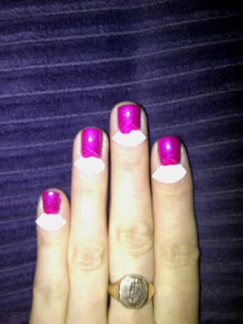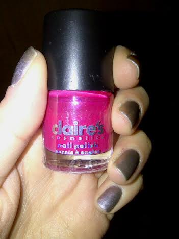 Next step is to choose a complimentary color. I went with this shimmery pink Claire’s polish (no name) that I found in my stash from my parent’s attic.