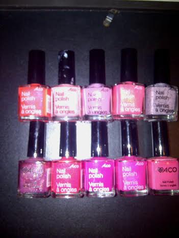 Bottom (L-R): Glitter Me Pink, Sweet as Sugar (Sugar Effect), Ardene’s Secret, Kiss my Lips, Neon Pink.