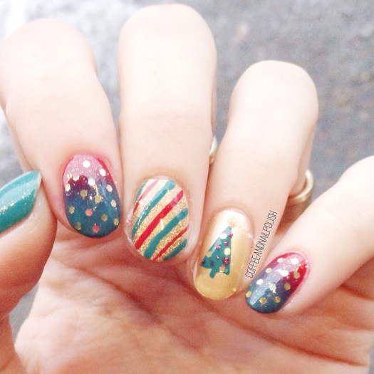 I’d thought I’d post the recent Christmas manicures I’ve been doing just in case you need some last minute inspiration for your nails while sitting under the tree tomorrow morning! All polish details can be found for these manicures on their original posts on my Instagram: @Coffeeandnailpolish.