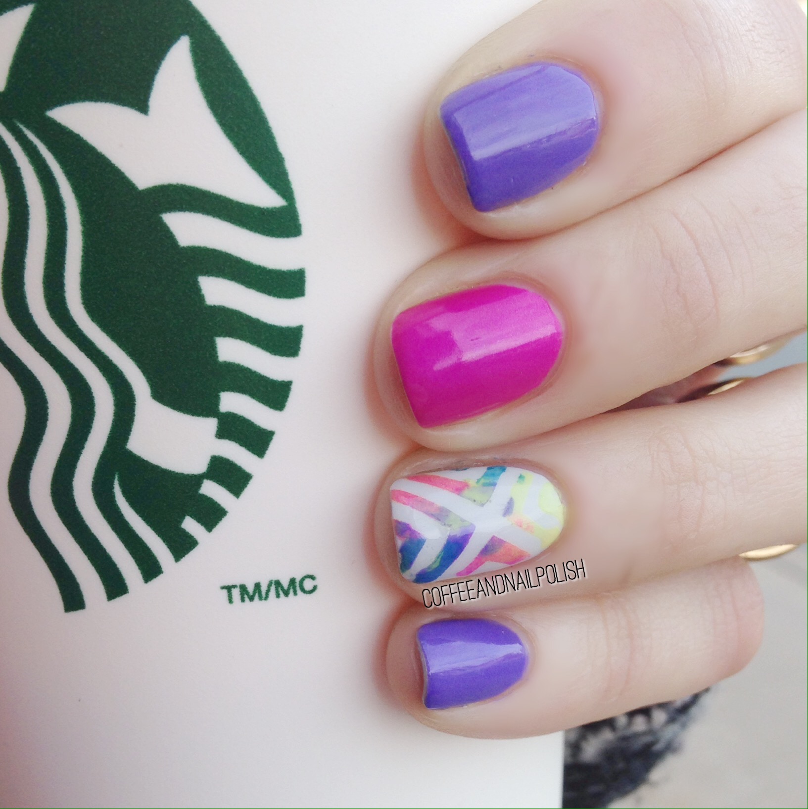 Sharing some more bright and colourful nails with you today! I’m all about the neon right now! It’s all my craving on my nails. It’s also giving me a chance to pull out more my MyNailsDid Nail Vinyls! I’m back to being a wee bit nail vinyls obsessed… Again. Once we move I need to make a big order!