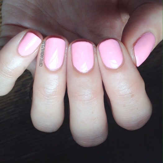 The first polish from the collection I have to share with you is Happy and Healthy which is a beautiful baby pink that applied perfectly in two coats. No base, no top coat. This kind of pink reminds me of Spring time. While it’s not a colour I wear a lot on its own, it’s very pretty!