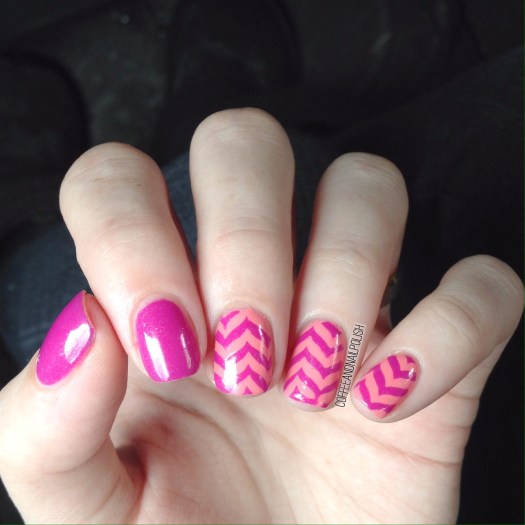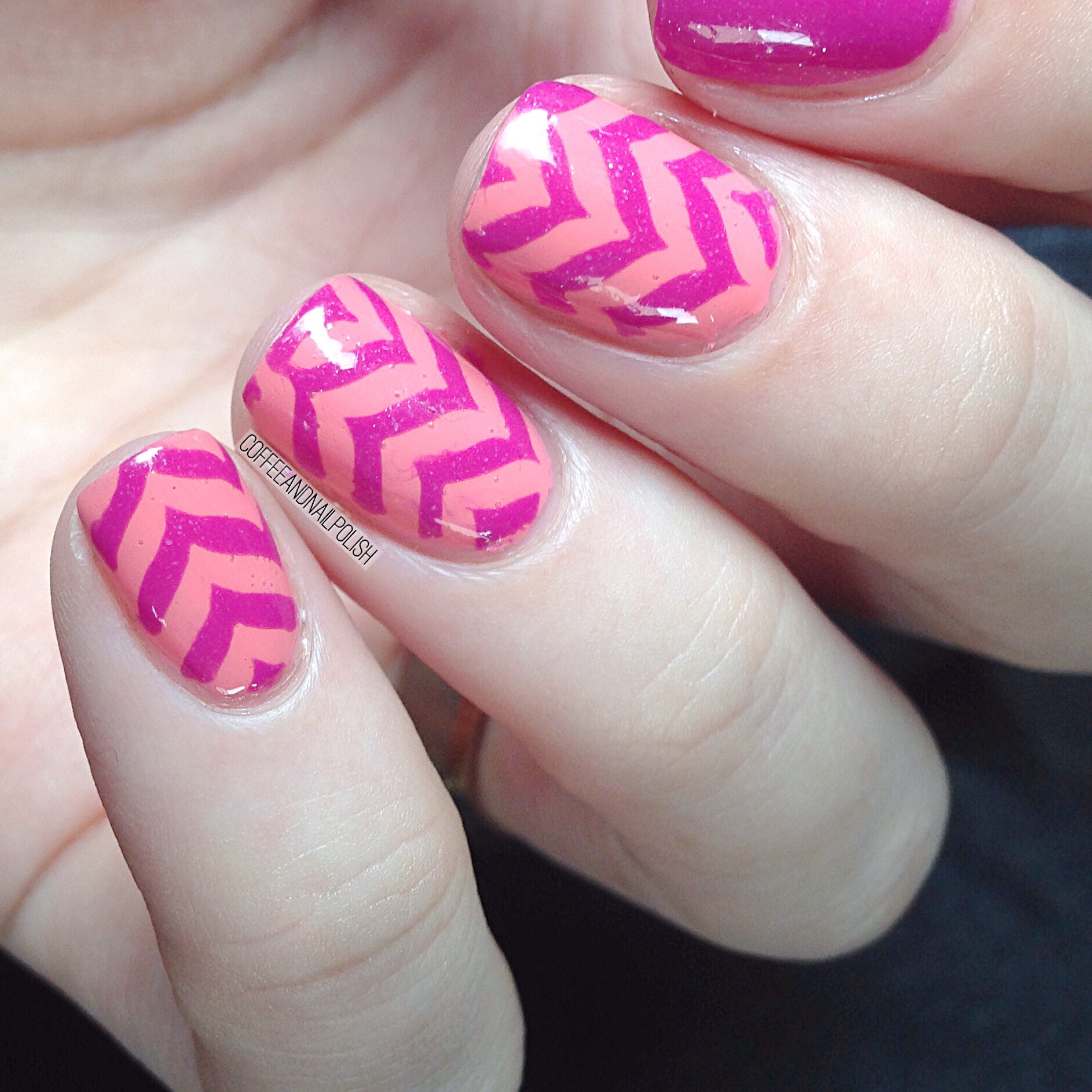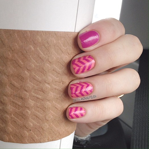 Spring fashion may feel like forever away, but my nails are definitely ready with these vibrant chevrons! I’m currently away on a mini family vacation to Northern New Brunswick where there is currently 4 feet of snow, so I definitely need some brightness in my life.