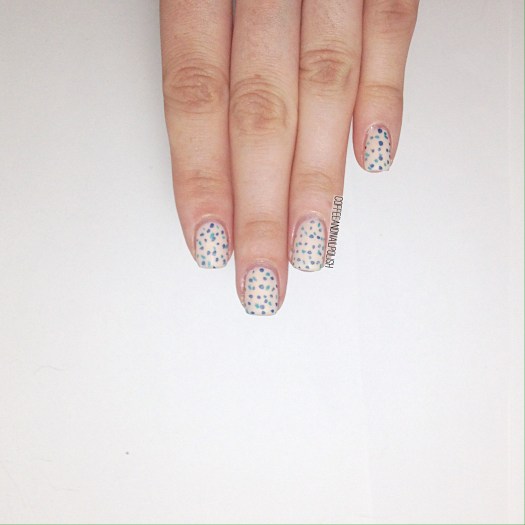 I originally intended for these to be a classic dotticure, using my nail art pens. But my navy pen was being a pain (it’s the original version) & ended up looking not dotty, so I went with it. This was the end result.