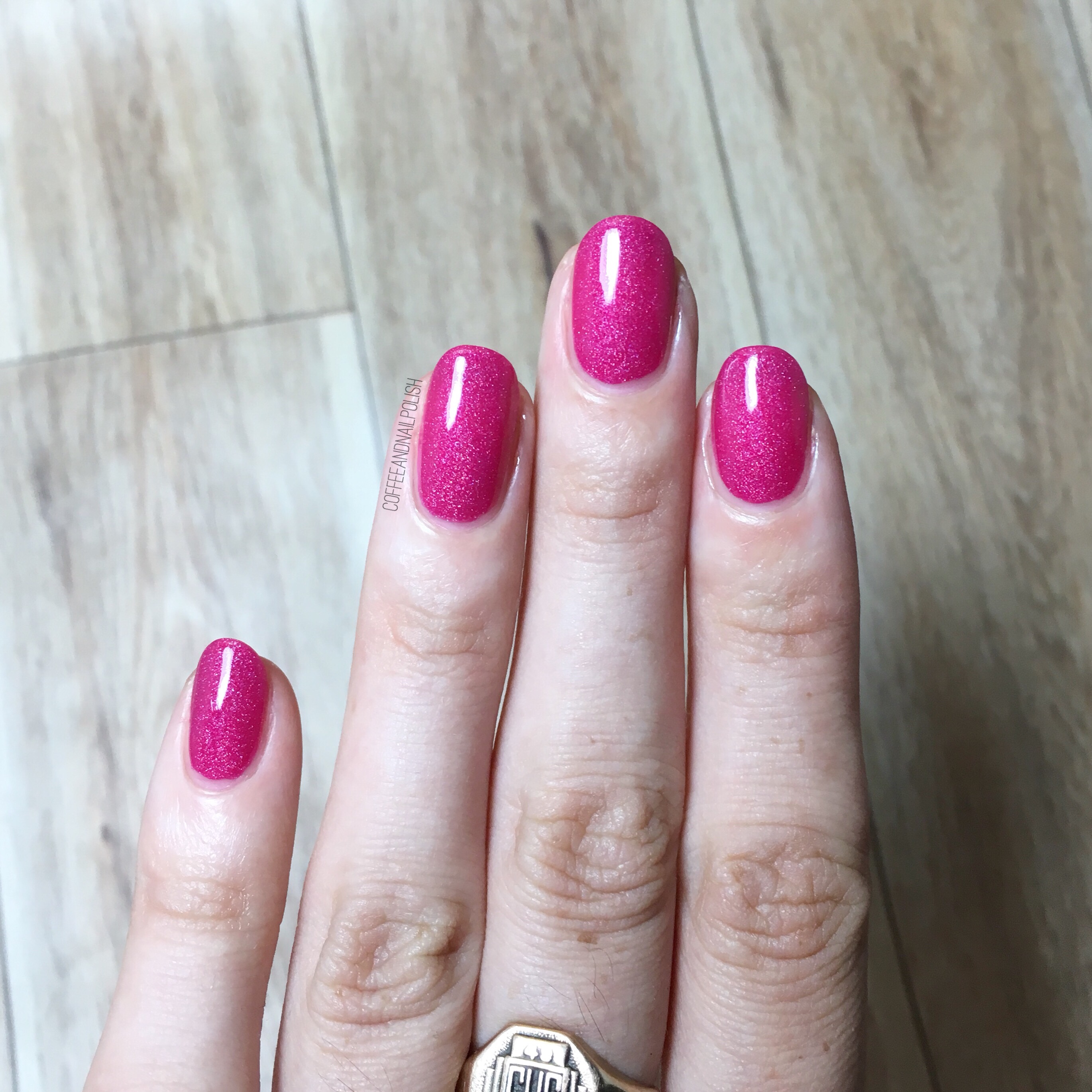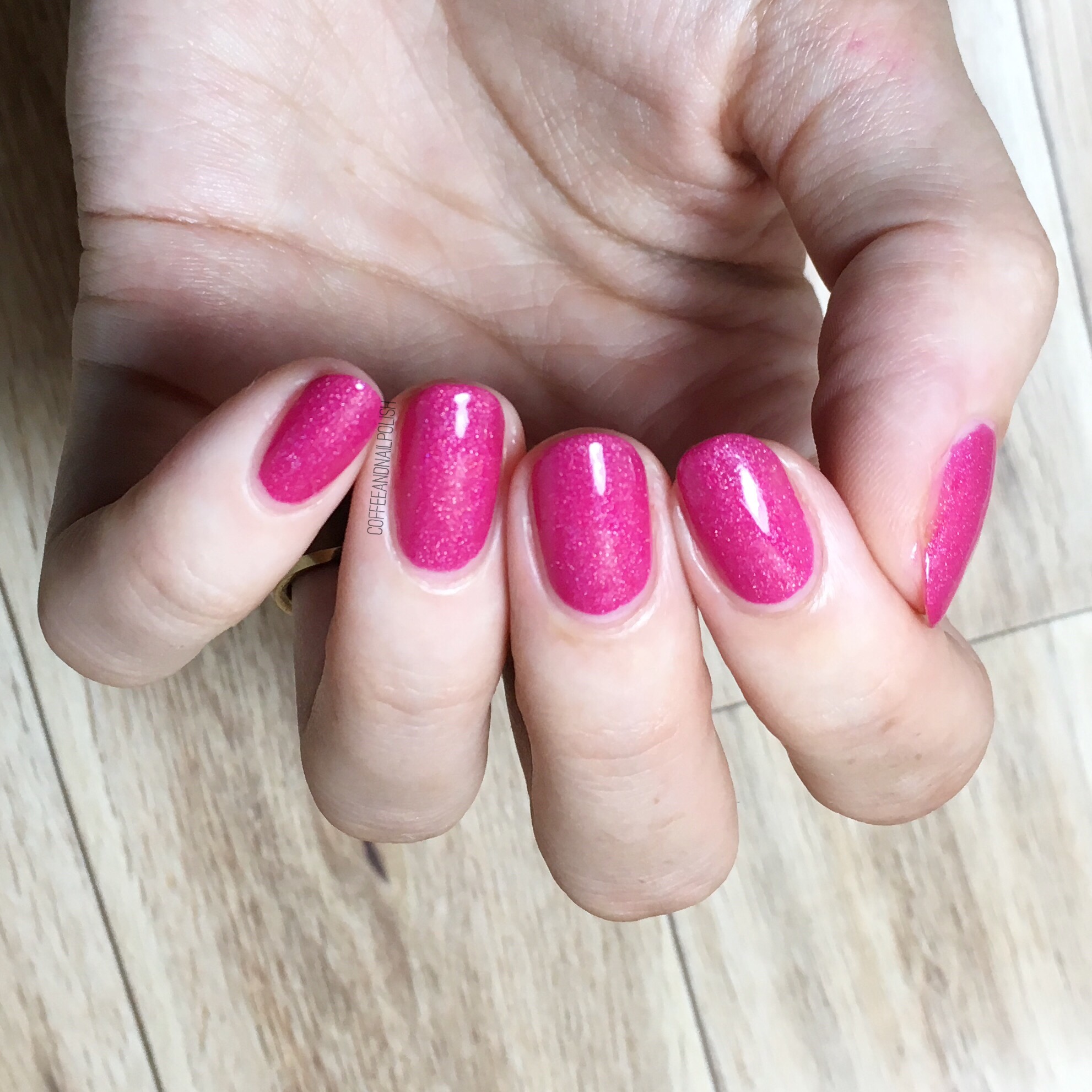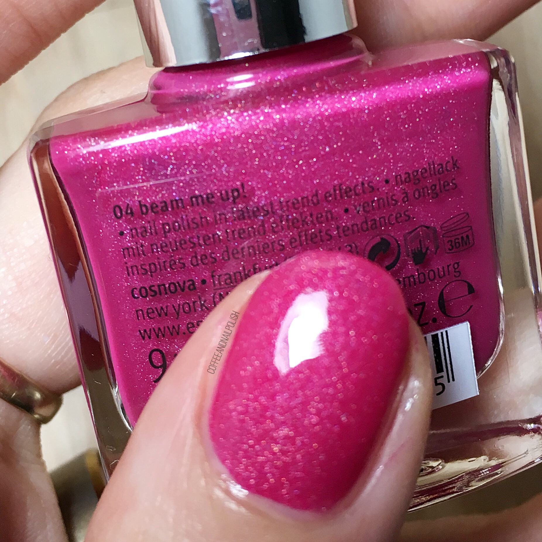 Beam Me Up! is a vibrant pink with golden shimmer with a slight scattered holo. This was two coats, plus top coat. I’ve been a fan of Essence shades for a long, long time & I always get so excited when new collections are released & this shade definitely lives in to the inner excitement I had brewing for these shades! This pink is just perfect & it manages to stand out from the other pink scattered holos in my stash.