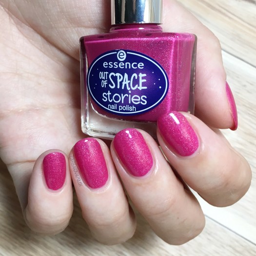 Happy Swatch Sunday! Hope you’re having an exciting weekend. I’m excited because I was at my local Shoppers Drug Mart & found they’ve recently put out the Essence Out Of Space Stories collection. I actually squealed when I saw them, which lead to awkward stares from those around me. Haha.