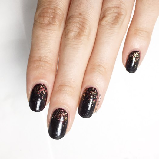 Who else is super excited for October? I am! Obviously I love Fall & the fact the weather has cooled down to much more seasonable temperatures (I got to wear my Uggs the other day!) has me pumped for the month to come. Thanksgiving, my birthday, & especially Halloween! 🎃 October is full of lots of fun, & I’m ready for all the accompanying nail art designs. So I thought I would start off with a quick & easy Halloween-esque glitter gradient.