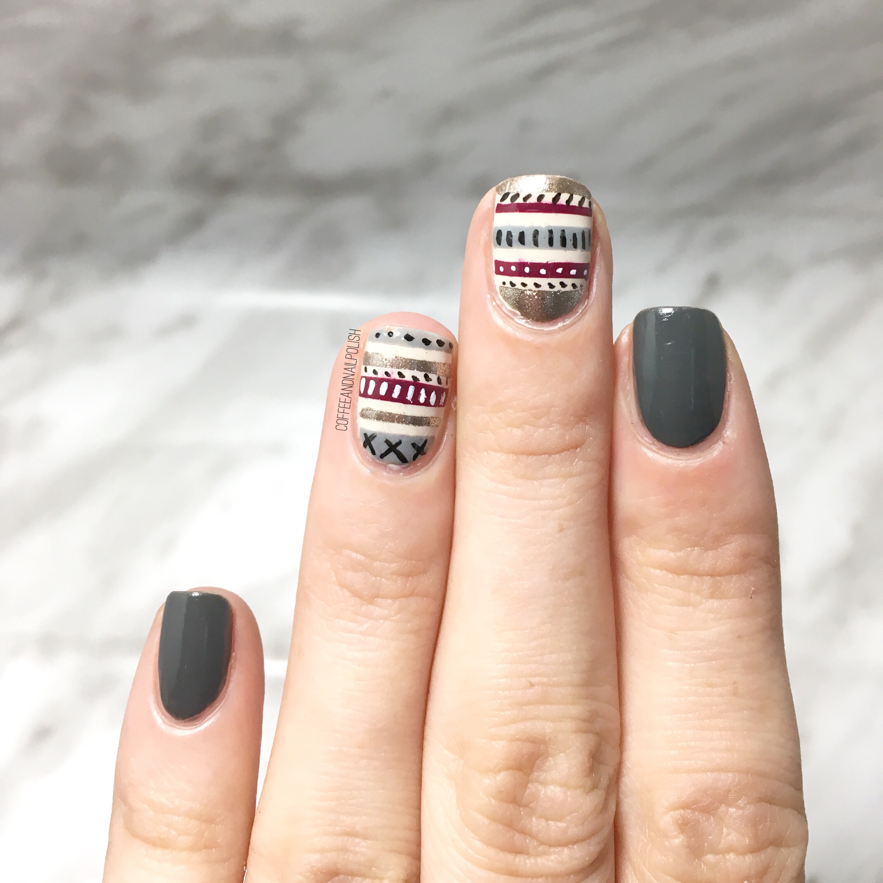 These nails are actually inspired by a pair of my favourite pair of winter leggings. I’ve been trying to come up with “short nail” designs & feeling frustrated, but I realized pretty much anything I can do when my nails are long I can create on short nails too! & this design is perfect for that. Also because I used nail vinyls & minimal freehanding, I would say this design is a good option for beginners. It looks much more complicated than it actually is.