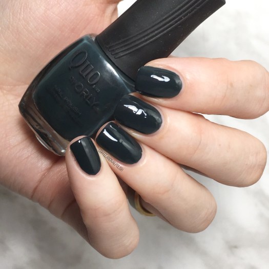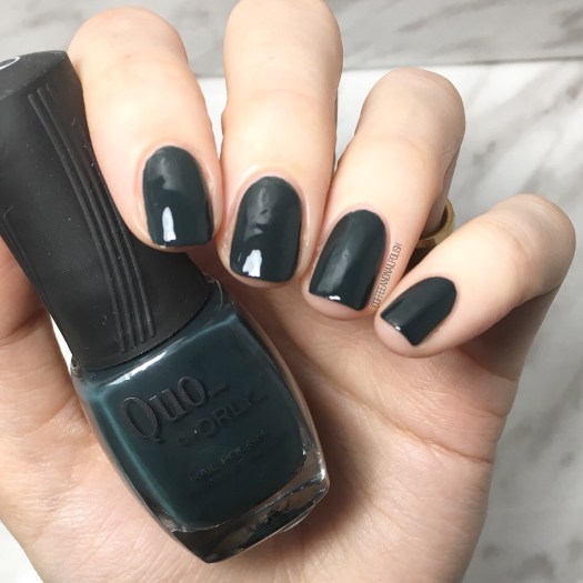 I was really impressed with these Quo by ORLY polishes because the formula on all of them is really good. Second Hand Jade is a dark pine green which also went on in two easy coats. Normally I do go too crazy for green (it’s not really my shade) but there is something about this one I really like. I think it’s the vampy-ness of it that I really love. I would love to see it with a coat of flakie top coat over top. Definitely going to have to try it out!