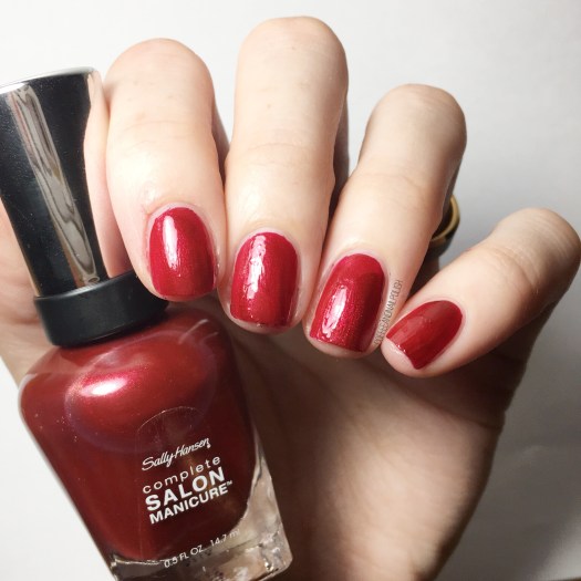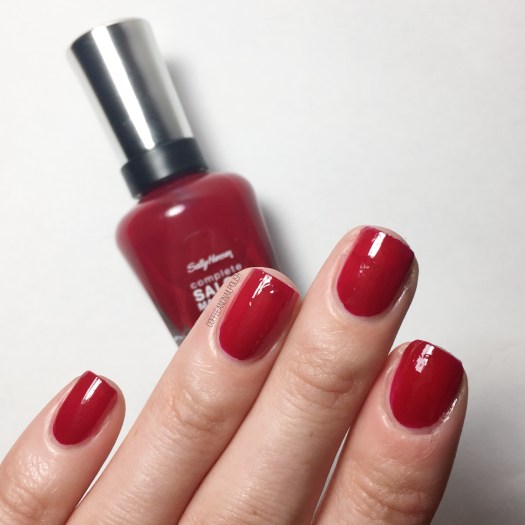 This cherry red is a new release from Sally Hansen, & it’s very lovely. Again, my shorties got away with only one coat needed for full coverage, with no worries about streaks. Slightly darker than Red My Lips, & a great polish for Fall!