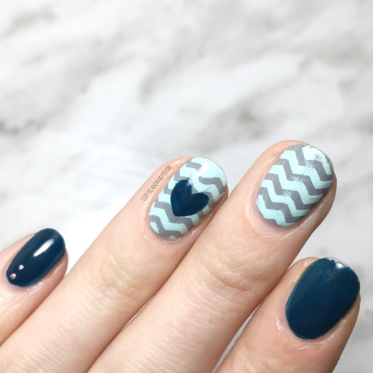 I seriously think these turned out so, so cute! It feels like absolute ages since I pulled out my Vinyls & I have to admit… I missed them. I also love this combination of dark teal, grey & mint. I never know what colours to wear on my nails this time of year, but darker shades are definitely calling my name more often!
