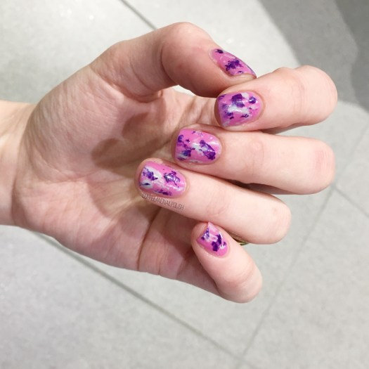 This technique honestly is one of my favourites & return to designs as it’s just so easy & relatively mess free. One of these days, maybe I’ll manage to do a video tutorial to show the just of it, but in the mean time you can check out my previous Saran Wrap designs for a run through of how to do them!