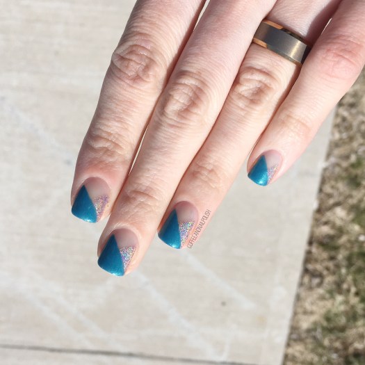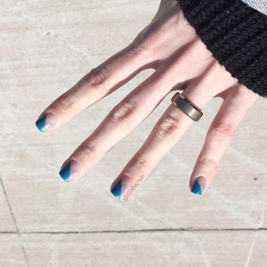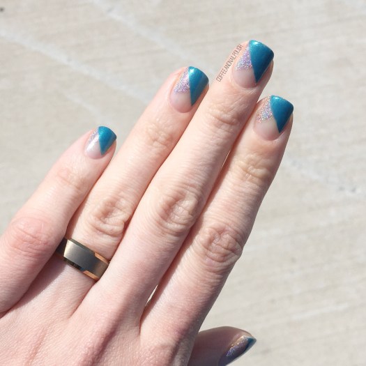 It’s been so long, too long, since I pulled out my bottle of A Pirate’s Life from Wrenn Polish & I thought it would look so pretty with a holo accent so I grabbed Happy Thoughts too. In regular light the holo kind of hides a bit, but as soon as you hit bright light BAM! 💥 There it is! You can’t miss those gorgeous rainbows. & I just love how this design turned out, especially since the whole manicure took me less than 20 minutes & didn’t need any tools or tape — just a steady hand.