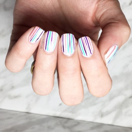 I love these neon summer stripes!! My nails are currently shimmering blue. 💙