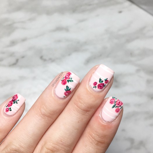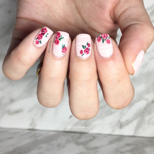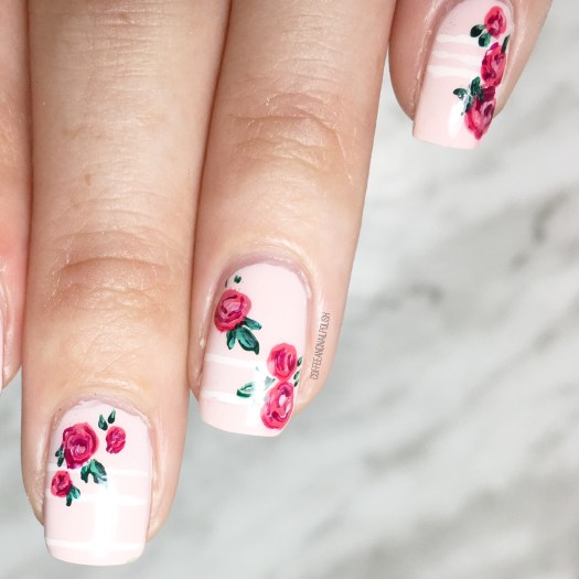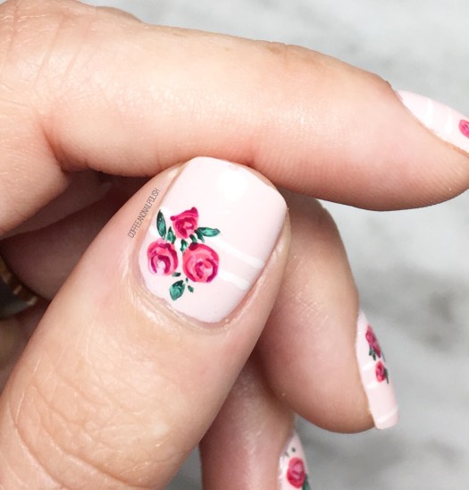 Today I’ve got some brand new nail art that I haven’t done in a while–roses! I was feeling inspired by this pretty pink polish & decided that some vintage rose inspired nail art would look so pretty over it! (& maybe I was feeling slightly girlie & romantic.)
