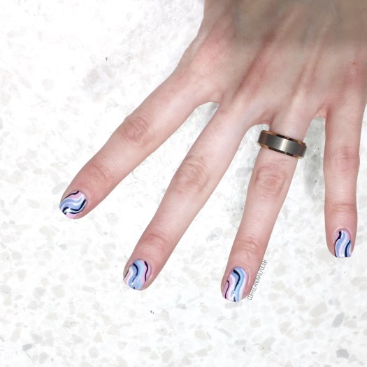 I can’t remember the last time I did an abstract stripe design, but it most definitely has been a while. (I went back through my Instagram feed, & this post from May 2018 seems to be my last time doing this technique, with a similar colour scheme. I guess I really love creating this style using shades of blue.