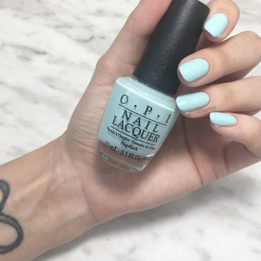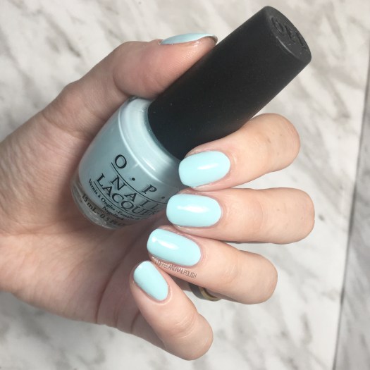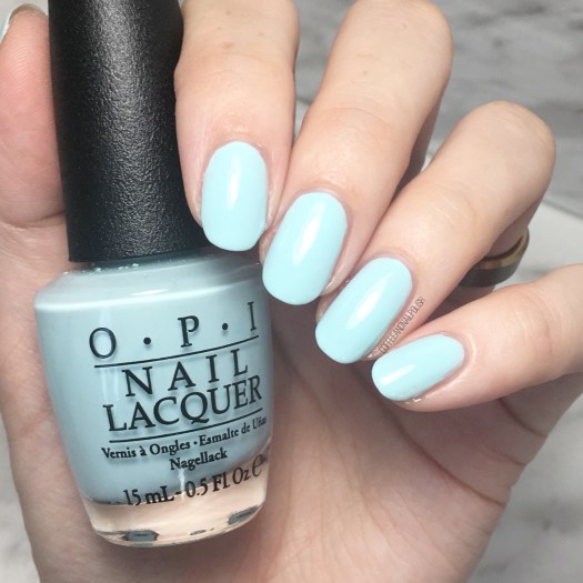 This minty shade was originally released as part of the OPI Venice collection for Fall/Winter 2015 & was the first shade I bought from that collection as you know I’m a sucker for any shade of blue. Also I remember that the name was just too cute, which was part of the reason I NEEDED to own this shade. (It’s also the reason I had to own OPI Pineapples Have Peelings Too.)