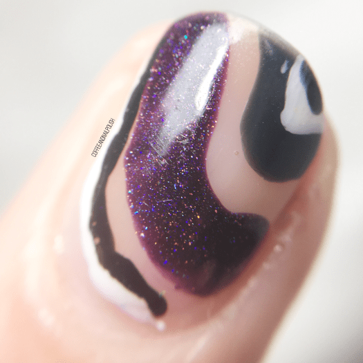 First off, check out that scattered holo because it’s absolutely amazing. If you missed my earlier Swatch Sunday post on it, Intoxicated is one of the two new holographic nail polishes that Wrenn Polish released recently. It’s STUNNING. Second I’m kind of obsessed with this grey by Revlon — Iconic. I recently picked it up at my local Lawton’s for only 99 cents. It really compliments this dark purple polish & just goes so well together.