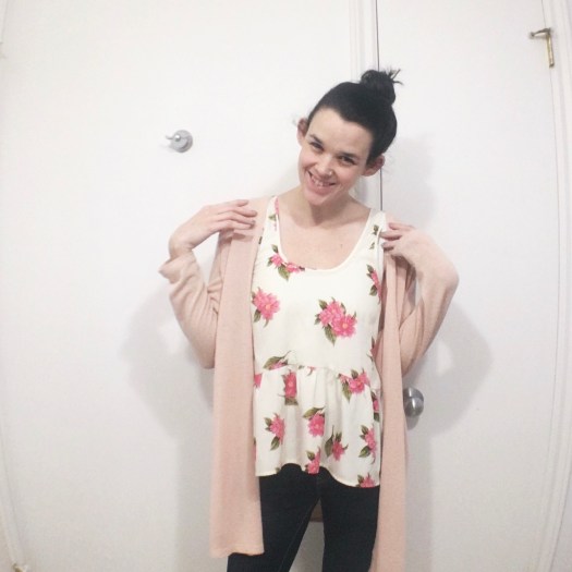 A floral shirt is always a good idea in my eyes, but I love that this one is peplum style because it shows off the areas I love (my shoulders/collarbone area) while camouflaging the areas I’m a little more self conscious about (my post-baby stomach). I thrifted it this Summer, but I’m a floral anytime kind of girl, so I love that throwing a cardigan over top makes it so verstitle.