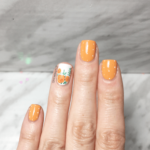 In honour of today, I thought I would do something I did for a previous blogiversary, & recreate one of my early nail art looks. This orange floral look was the second ever nail art I posted here on the blog, & one of the first really good florals I ever painted. I was going to attempt to repaint this using all the originally polishes I used, but sadly both my bottles of China Glaze Metro Pollen-tin, as well as my bottle of OPI My Boyfriend Scales Walls are long gone. So I updated the look using newer polishes in the stash.