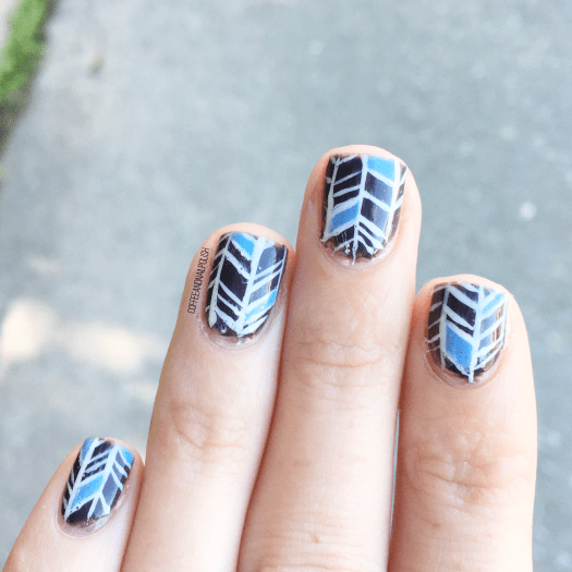 I’ve always been a fan of herringbone/chevron looks, mostly because they’re surprisingly easy to do! & for a bit of a rustic look like this, you don’t need to have the most perfectly thin of straight lines. & it will still look cute! This particular design was actually inspired by this pot, although I added the splashes of blue to make it a bit more Summery.