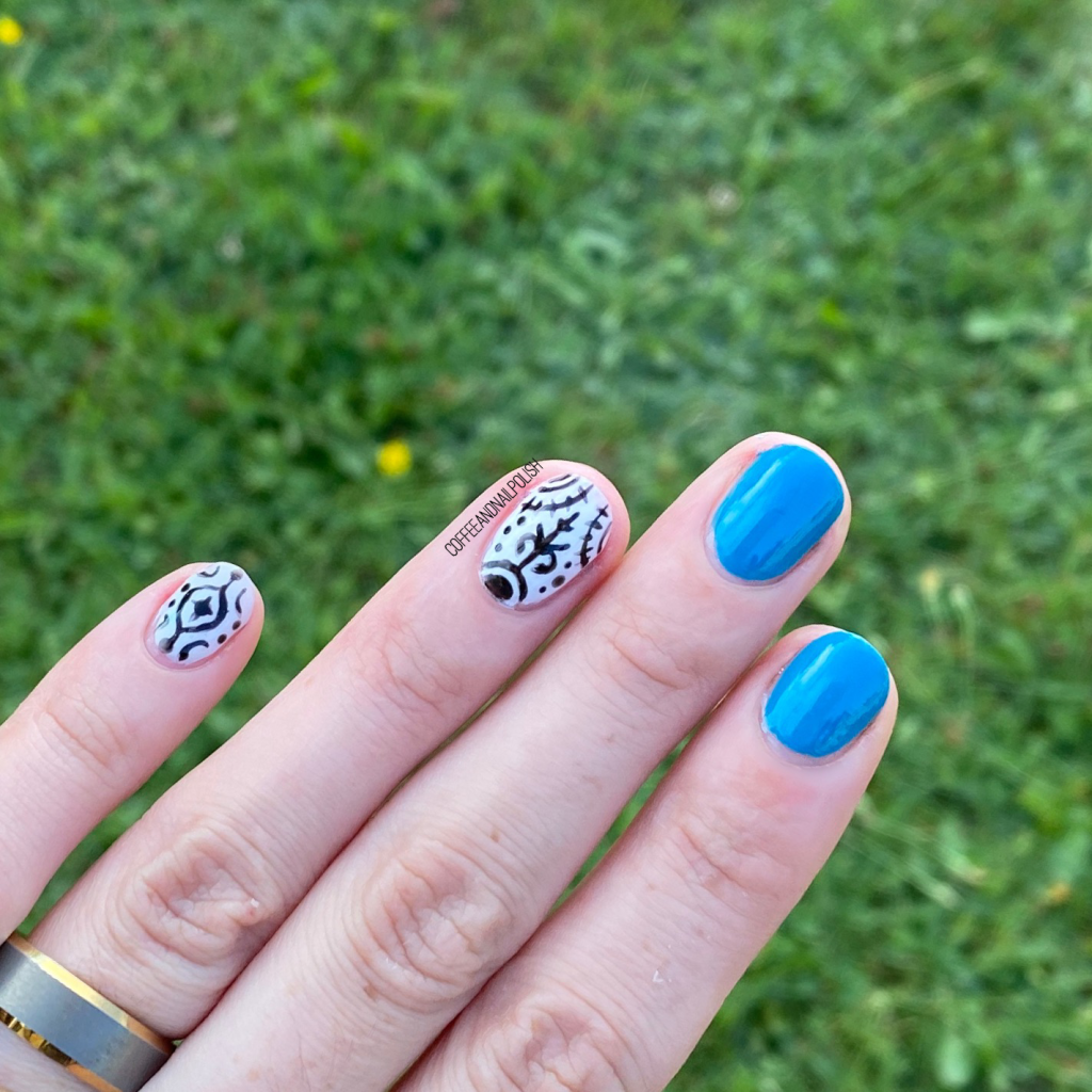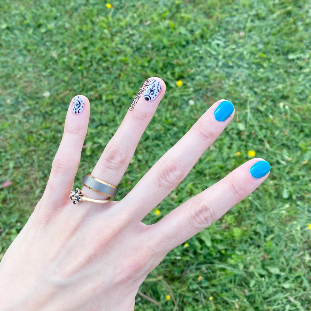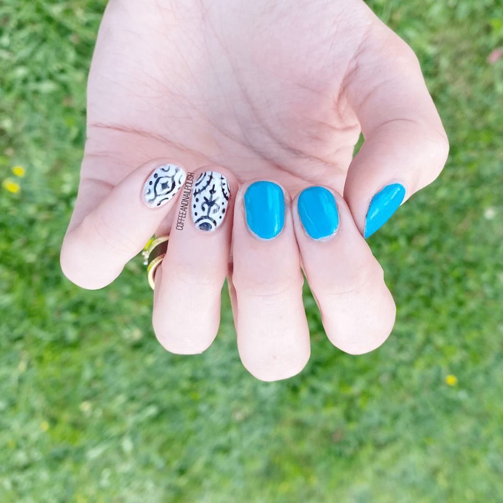 What do you think of this accent nail design? Do you like the black & white against the turquoise? Share all your thoughts down in the comments below!