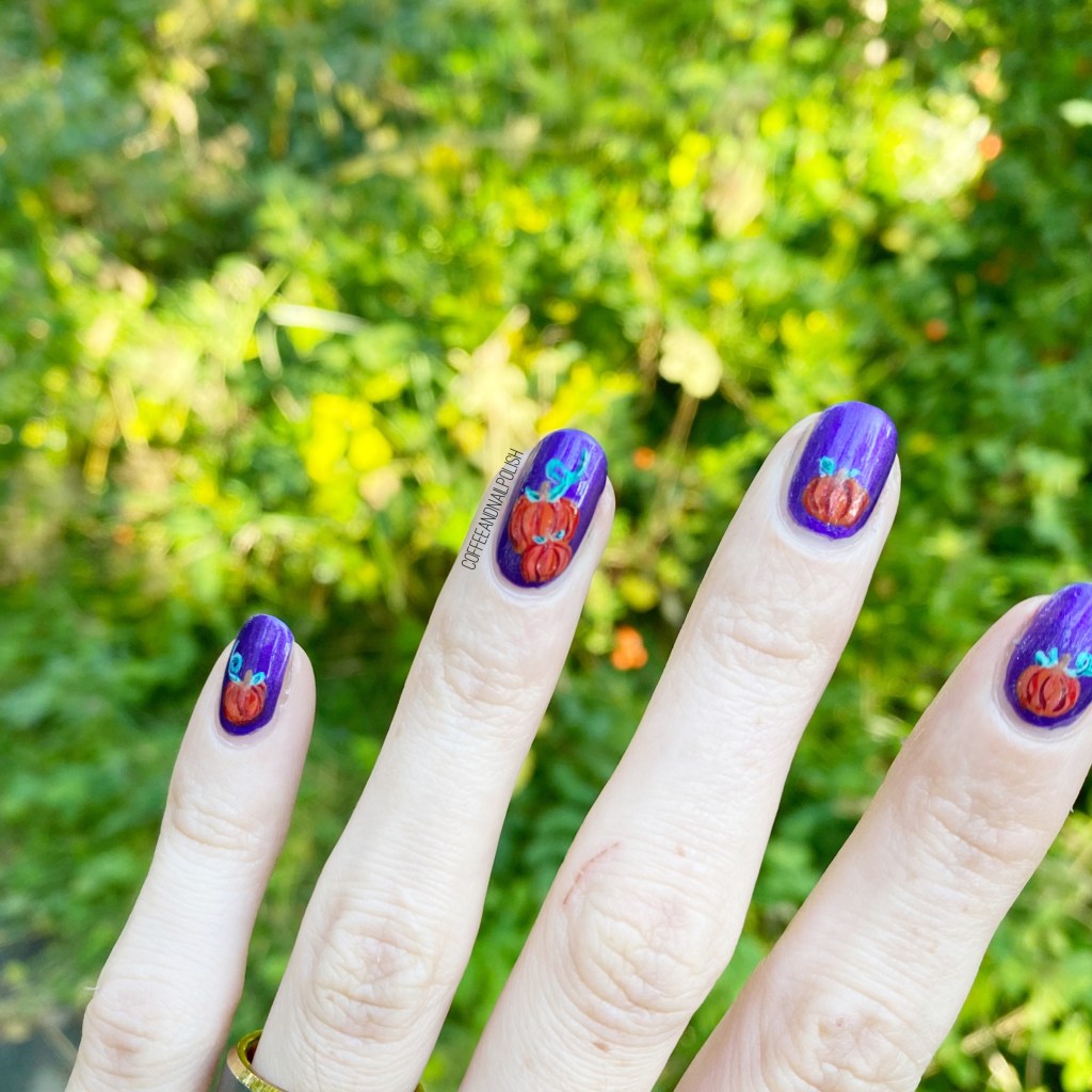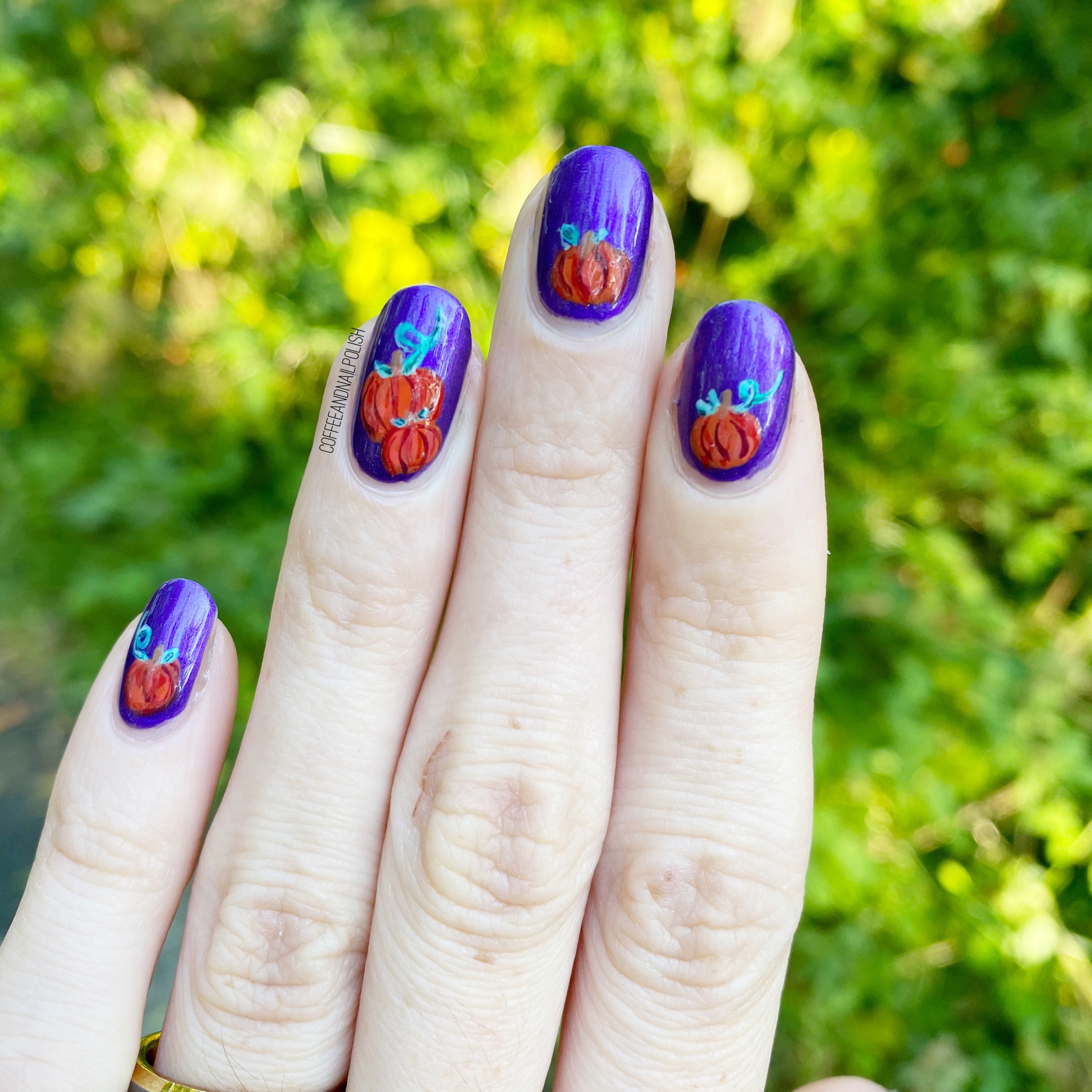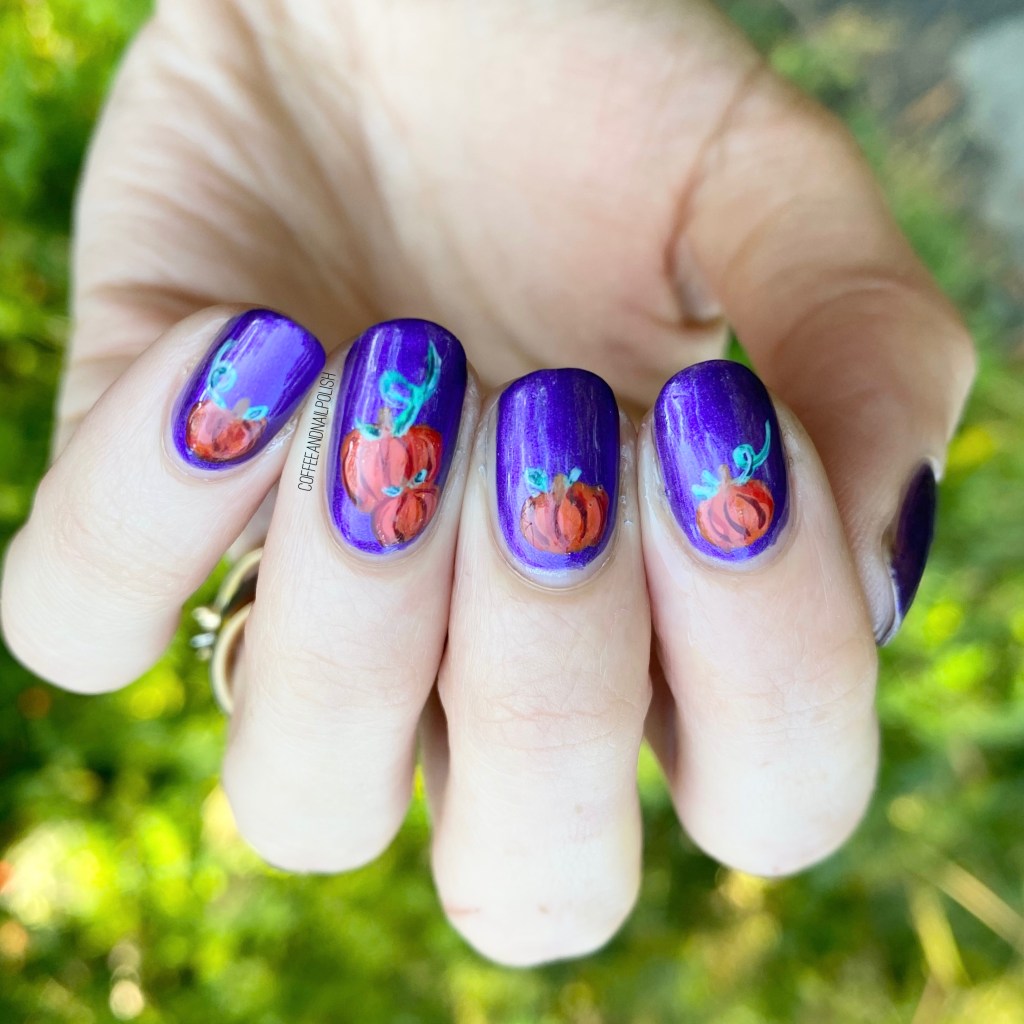First I’m wearing Buffy The Violet Slayer which is fitting as I’ve been rewatching Buffy again. Second, how adorable did these pumpkins turn out? This is reminiscent of a design I did, like, 5 October’s ago, & I think they turned out too cute! You can never have too much pumpkin in your life… including on your nails! 🧡🎃 also I totally adore the combination of pumpkin & orange together. It just looks so good!