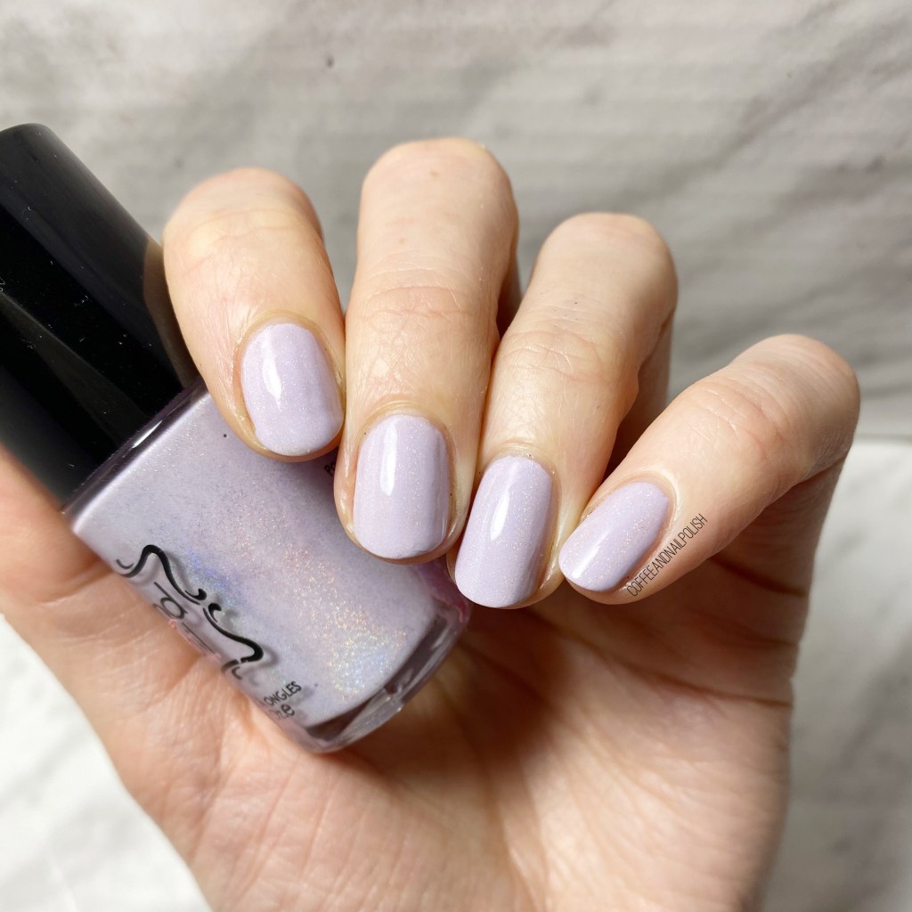 How perfectly Spring-like is this beautiful lilac purple shade. The base itself is creamy & smooth, but it has a beautiful layer of holo. The holographic glitter is full, & does not get hidden on the nail. You can see a bit of sparkle in my light box, but this shade truly comes alive in the sunshine.
