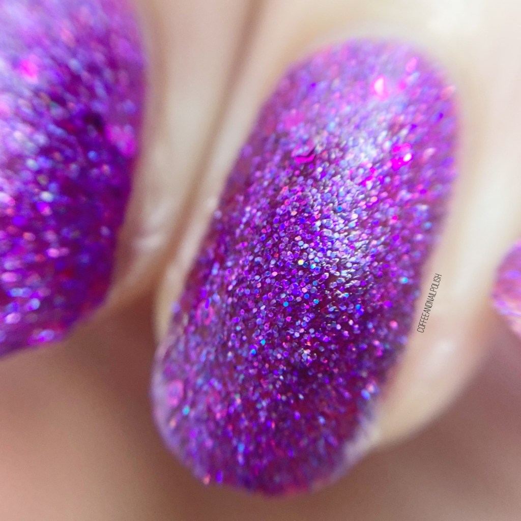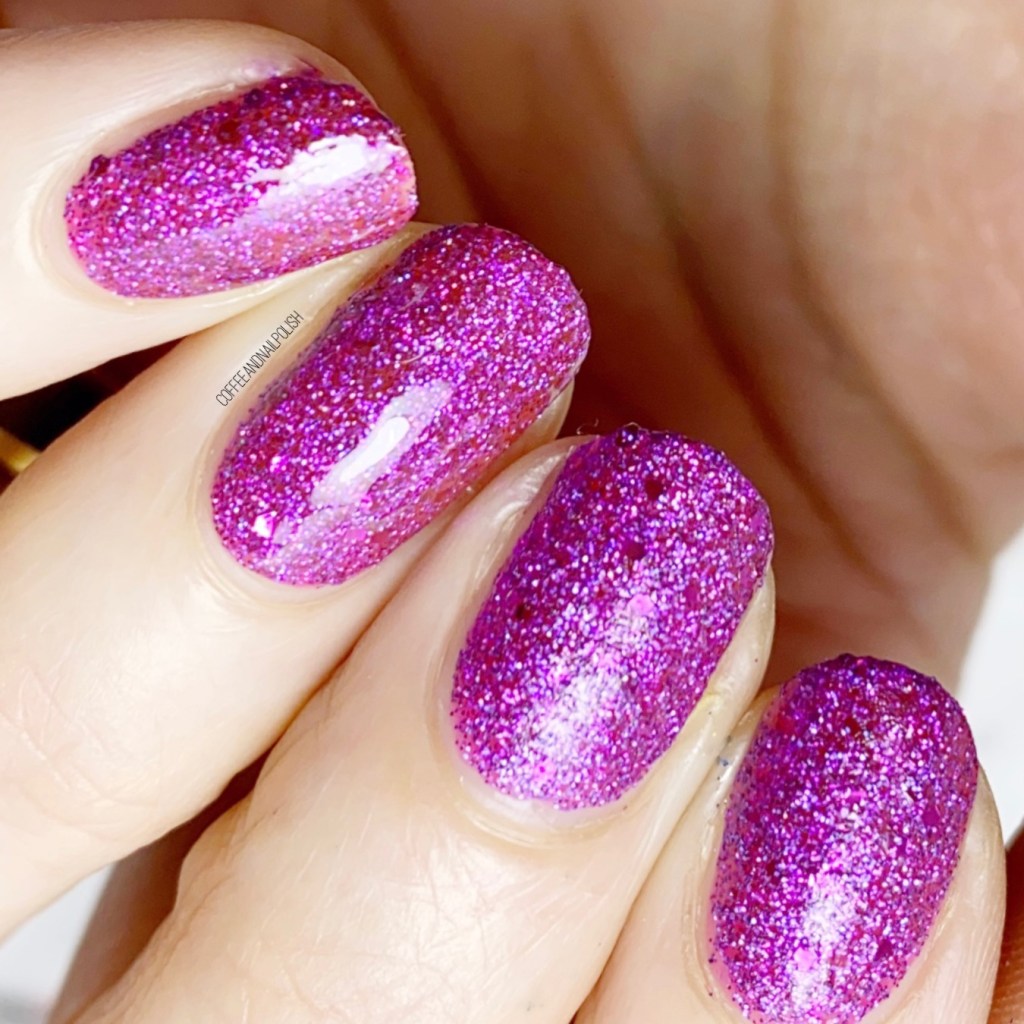 Look at all that glitter! It’s seriously amazing. ✨ you can see above the gritty finish of it dried down without top coat. It reminds me a lot of the textured polishes that used to be popular years ago, & I’m really obsessed with it.