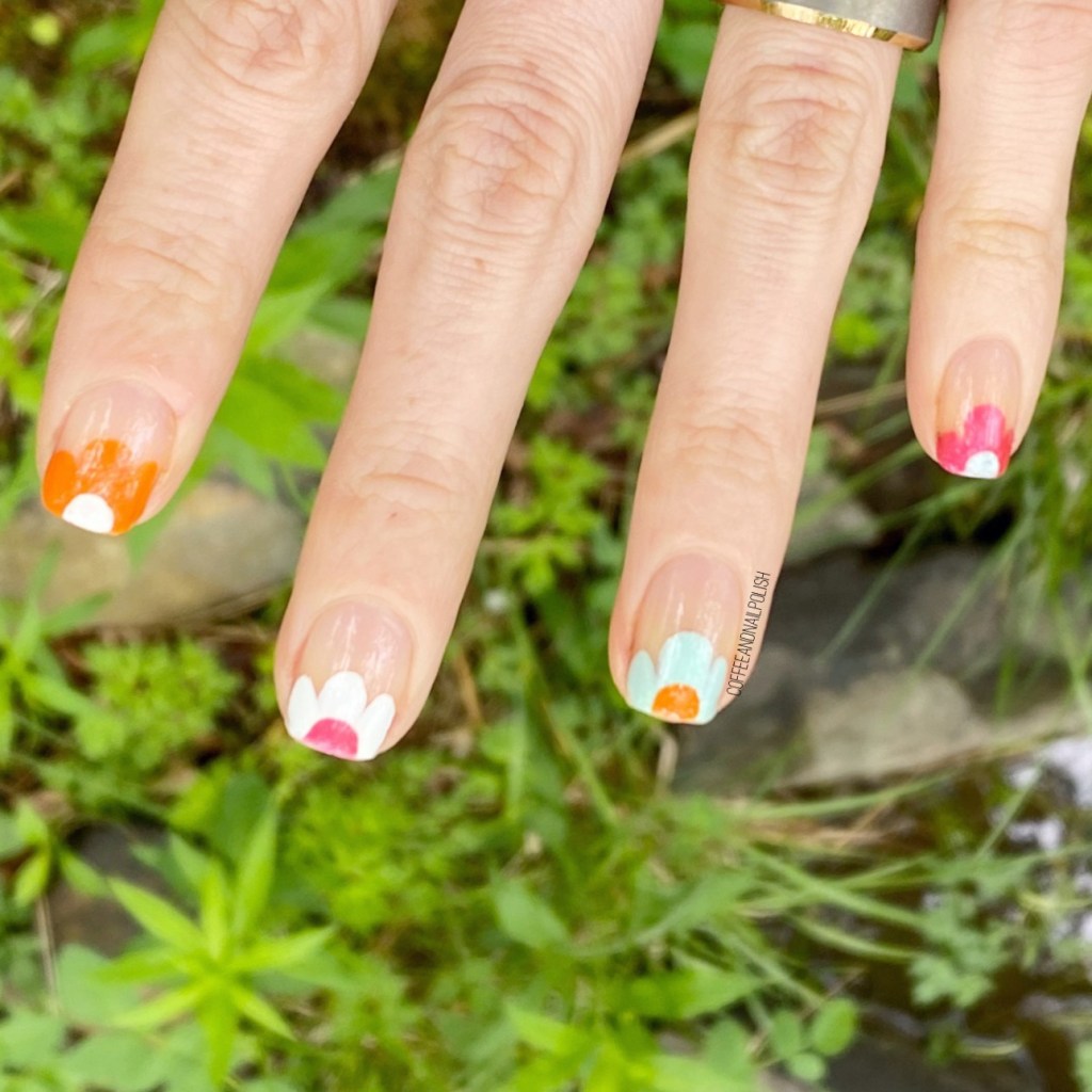 How seriously adorable are these colours together? Two shades (Tangerine Tease & Pucker Up) are from the Summer 2021 collection, & the other two (Mint Candy Apple & Blanc) are core shades, but all 4 go so beautifully together to create this fun, groovy, poppy nail art look. I really love it!
