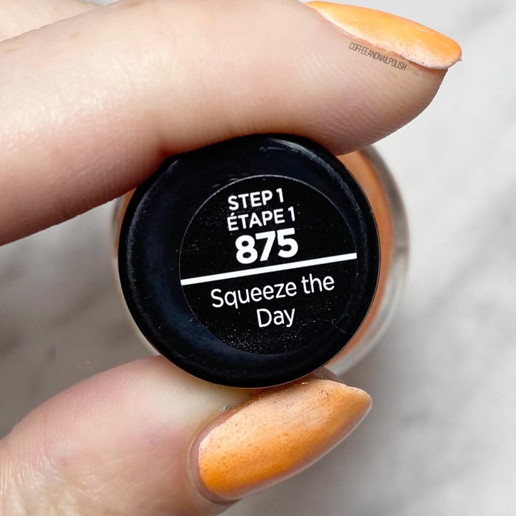 Next up, we have Squeeze The Day, a shimmery orange with gold flakes. Like the majority of the shades in this collection, the polish is very thin. I’m wearing 3 coats on all nails, but I feed like it almost wasn’t enough on some nails. The formula was a bit tricky, which you can kind of see on my middle finger. I do love how it looks on my ring finger though — it looks really cool with just a hint of visible nail line peaking through. I can also see this as an amazing base for some Fall nail art, with maybe some maroon leaves over top.