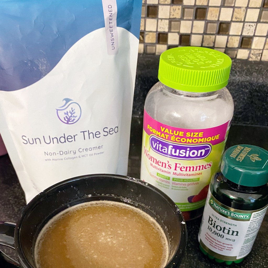 • Marine Collagen— I’ve heard people tout the amazingness of collagen for years, so when they started carrying Sun Under The Sea Collagen Creamer at work, I decided to start drinking it with my morning coffee, & I definitely feel like it gives a great boost to my growth! So far I’ve gone through 3 bags, & I definitely will continue to add it to my daily diet. I add two scoops to my morning coffee.
