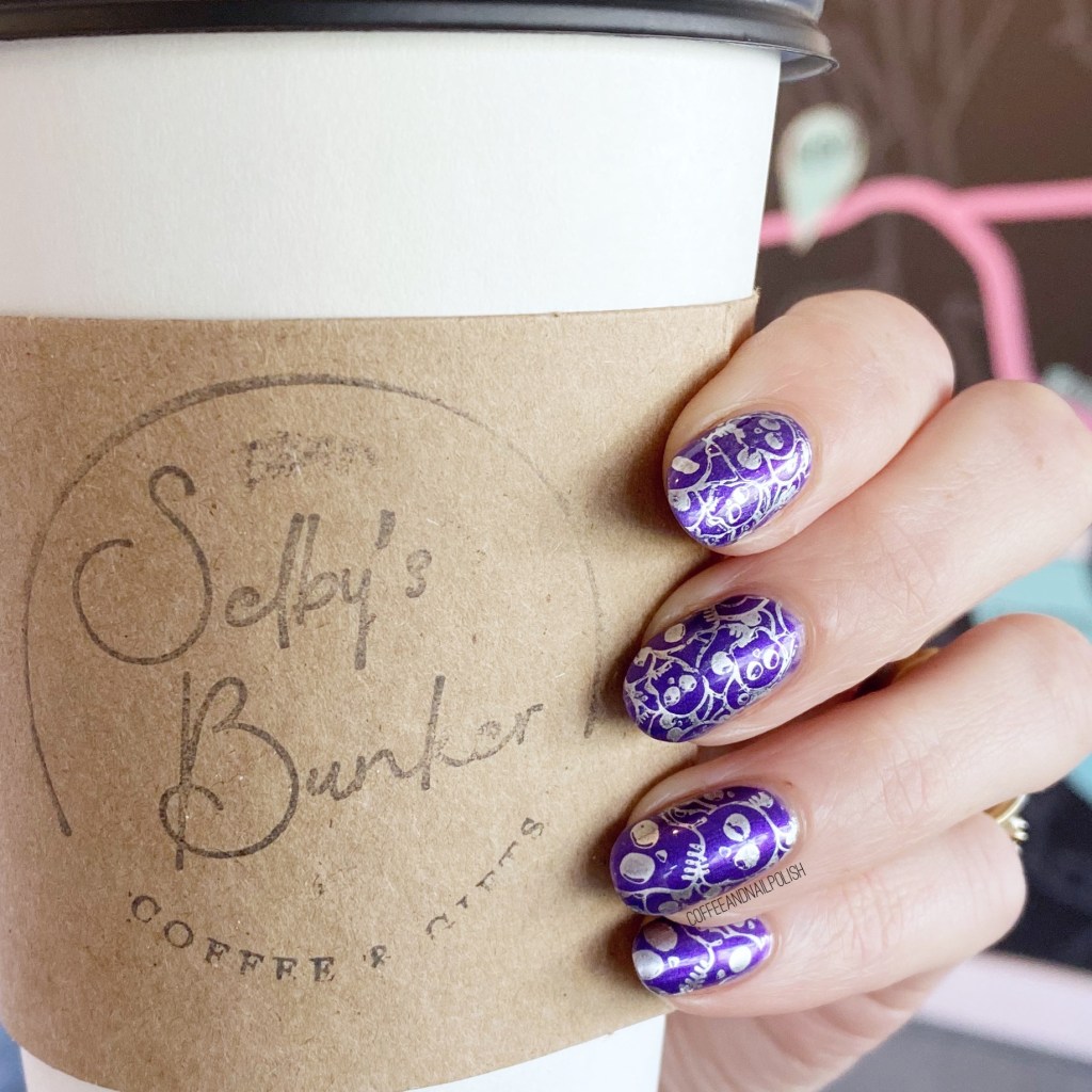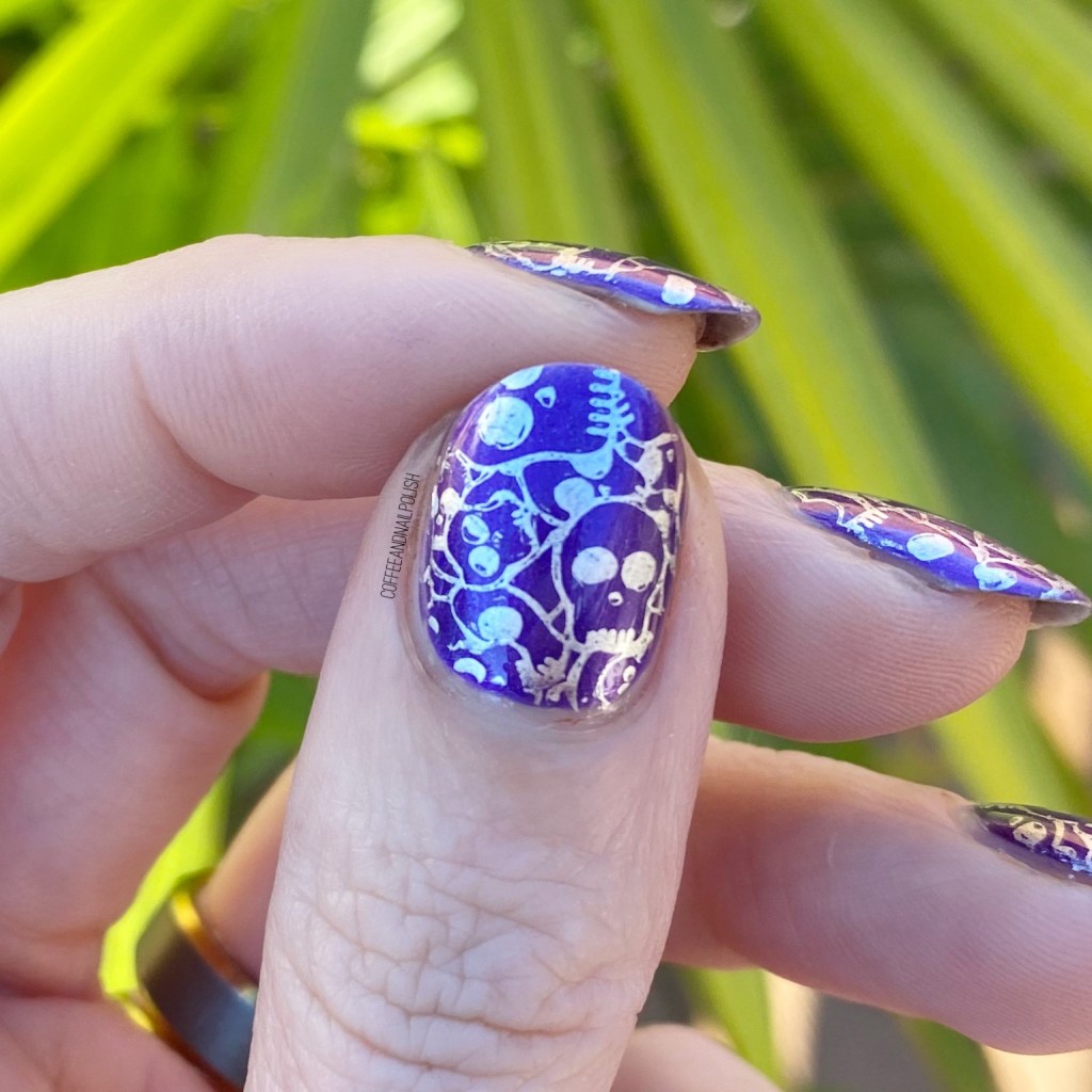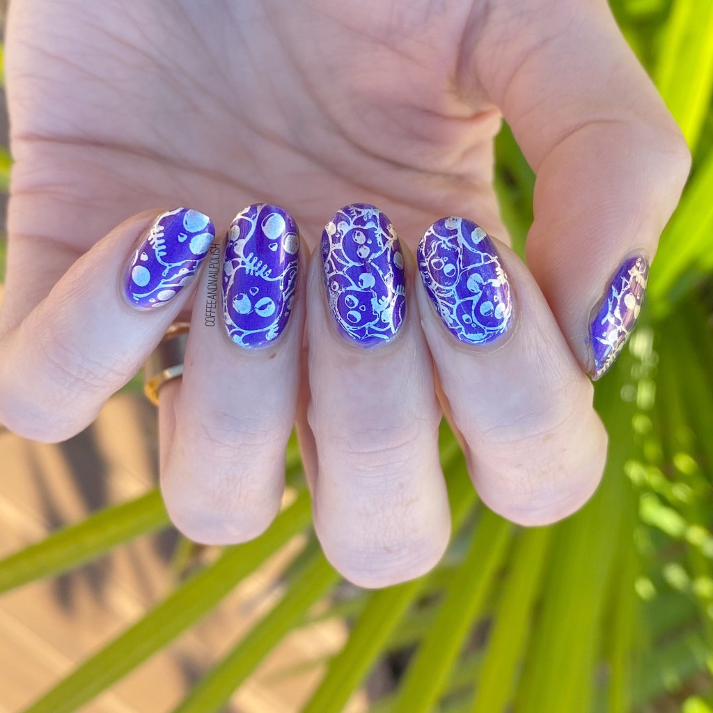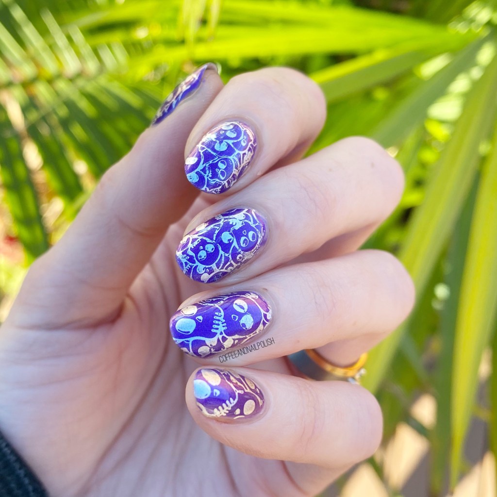 Second, I love how lovely the silver is over the purple. A nice spooky skull design, perfect for my first Halloween look of October!
