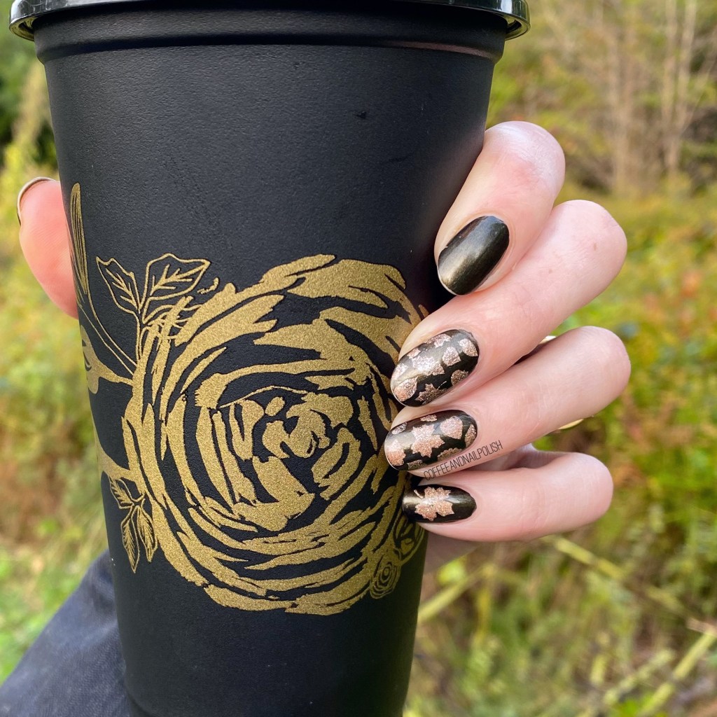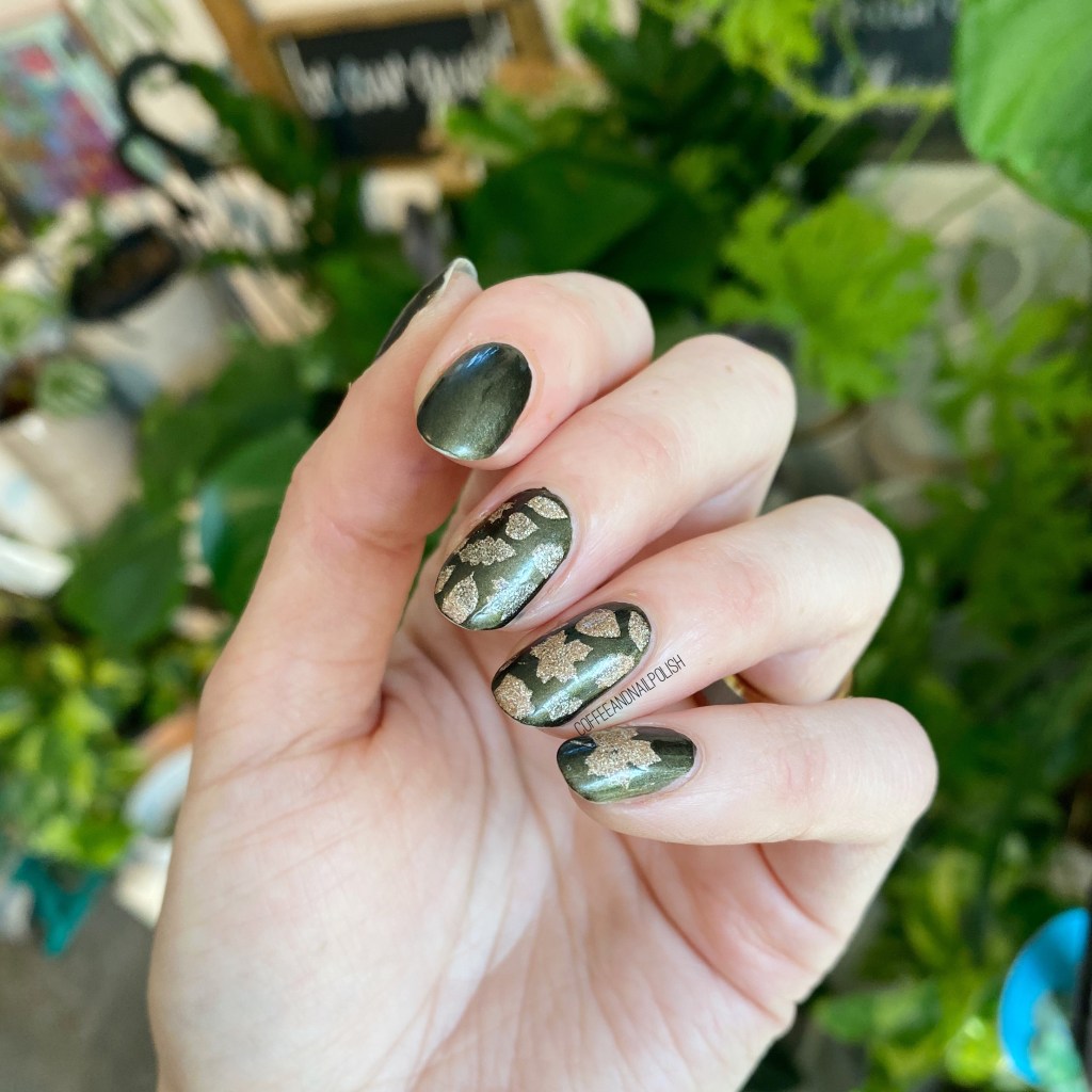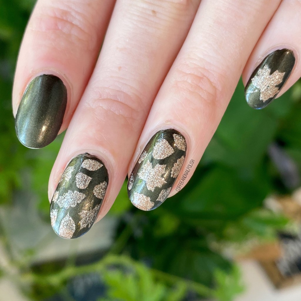 Itās been a while since I pulled out my bottle of OPI DS Classic from my stash ā itās such a beautiful gold & you get that bit of holo with it as well. It definitely pops against the darkened base of Loves āEm & Leaves āEm. It just works so well in this very Autumnal design.