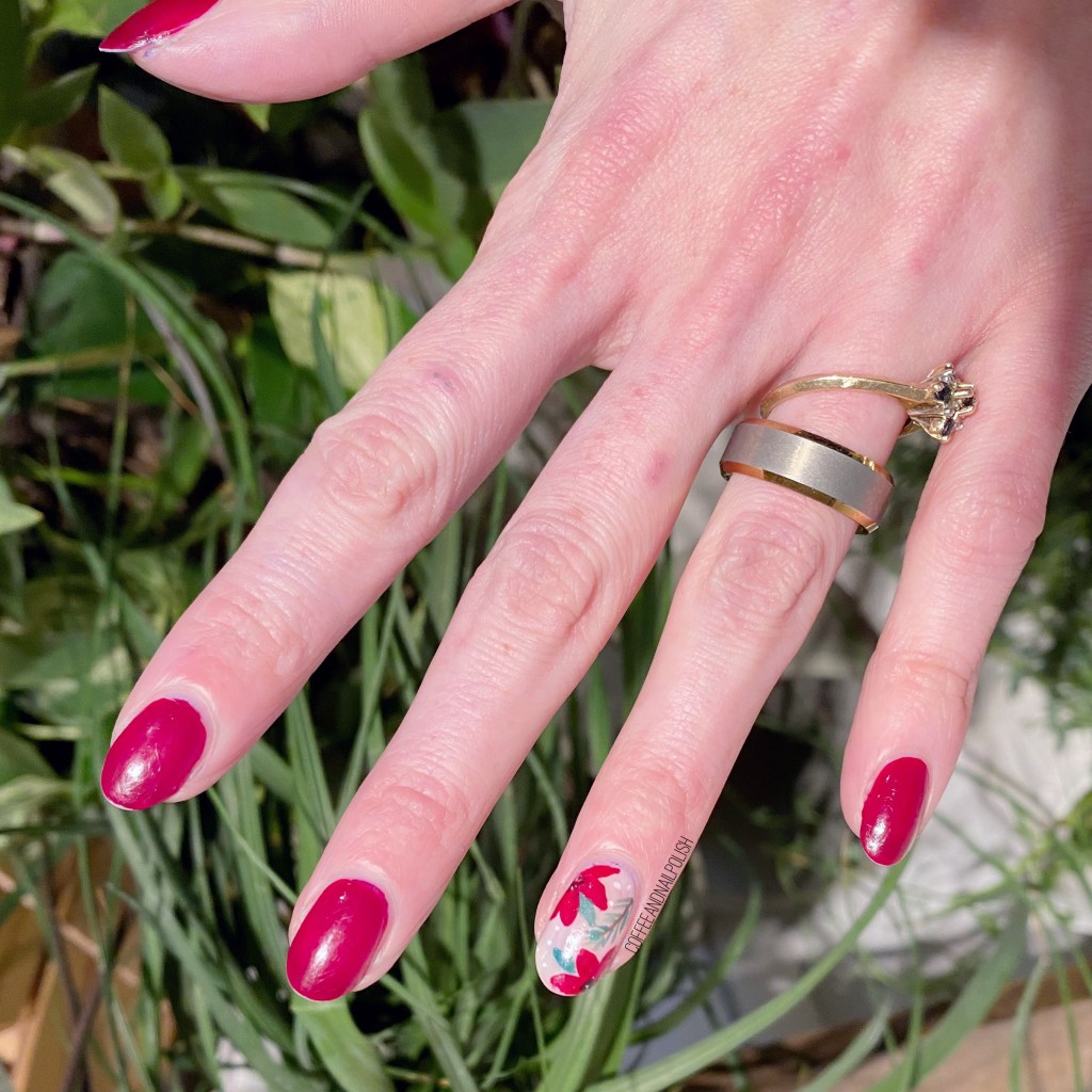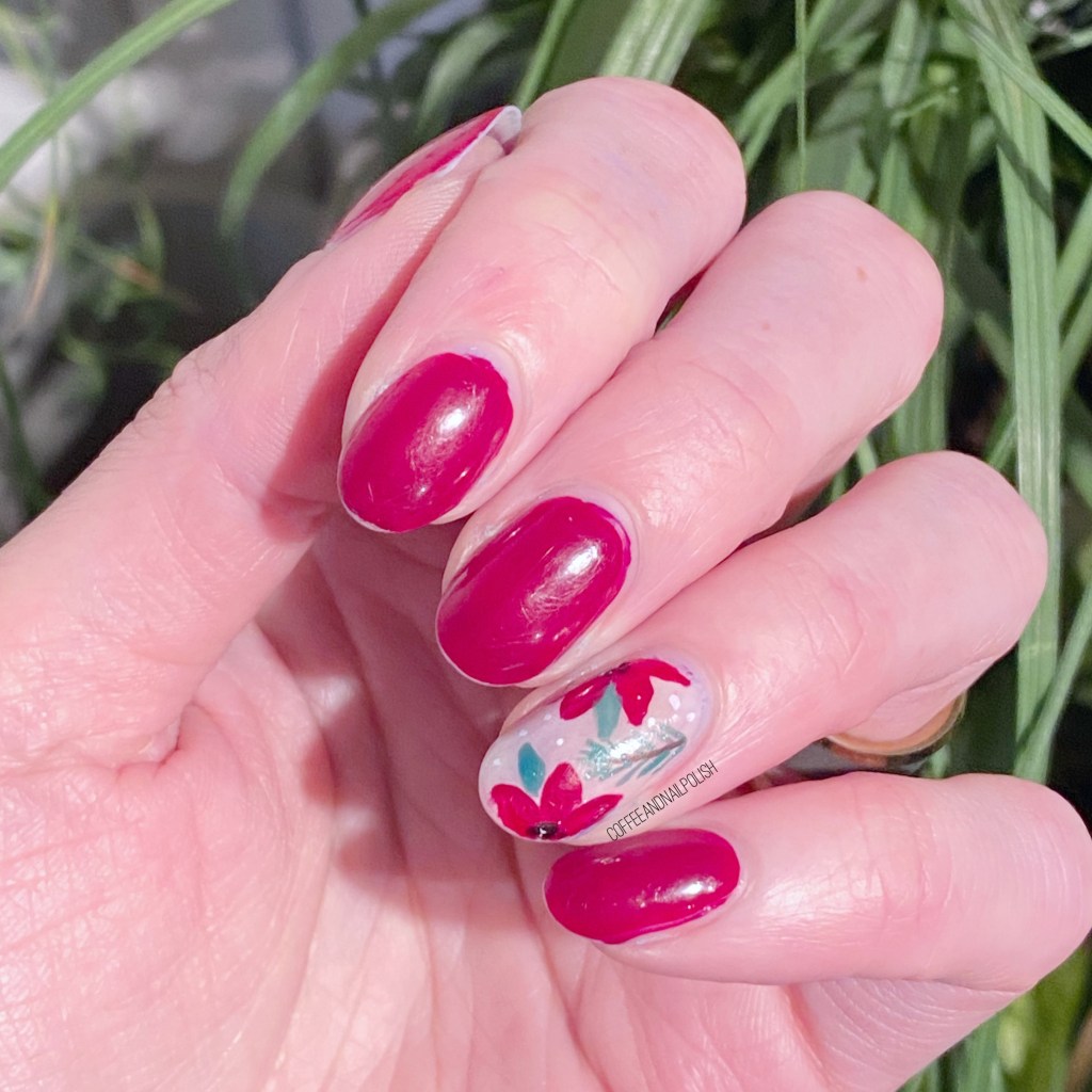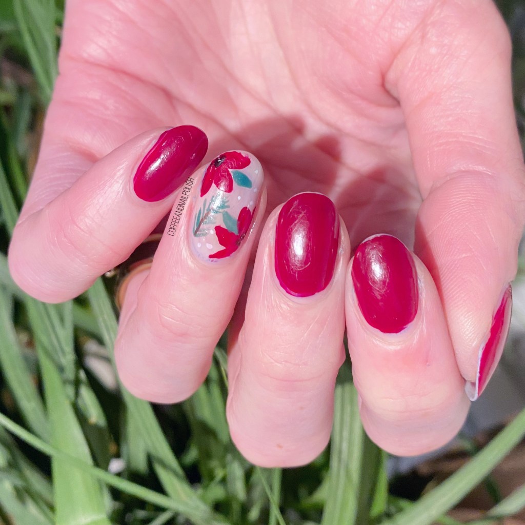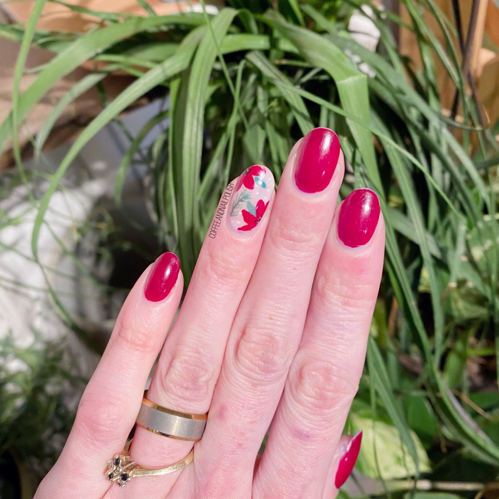 Today’s pre-Christmas look is also todays prompt for Glam Nails Challenge December — poinsettia. So I created a cute floral poinsettia accent nail!