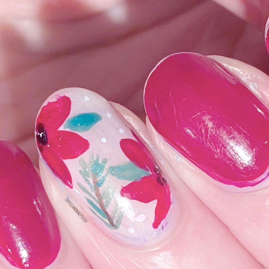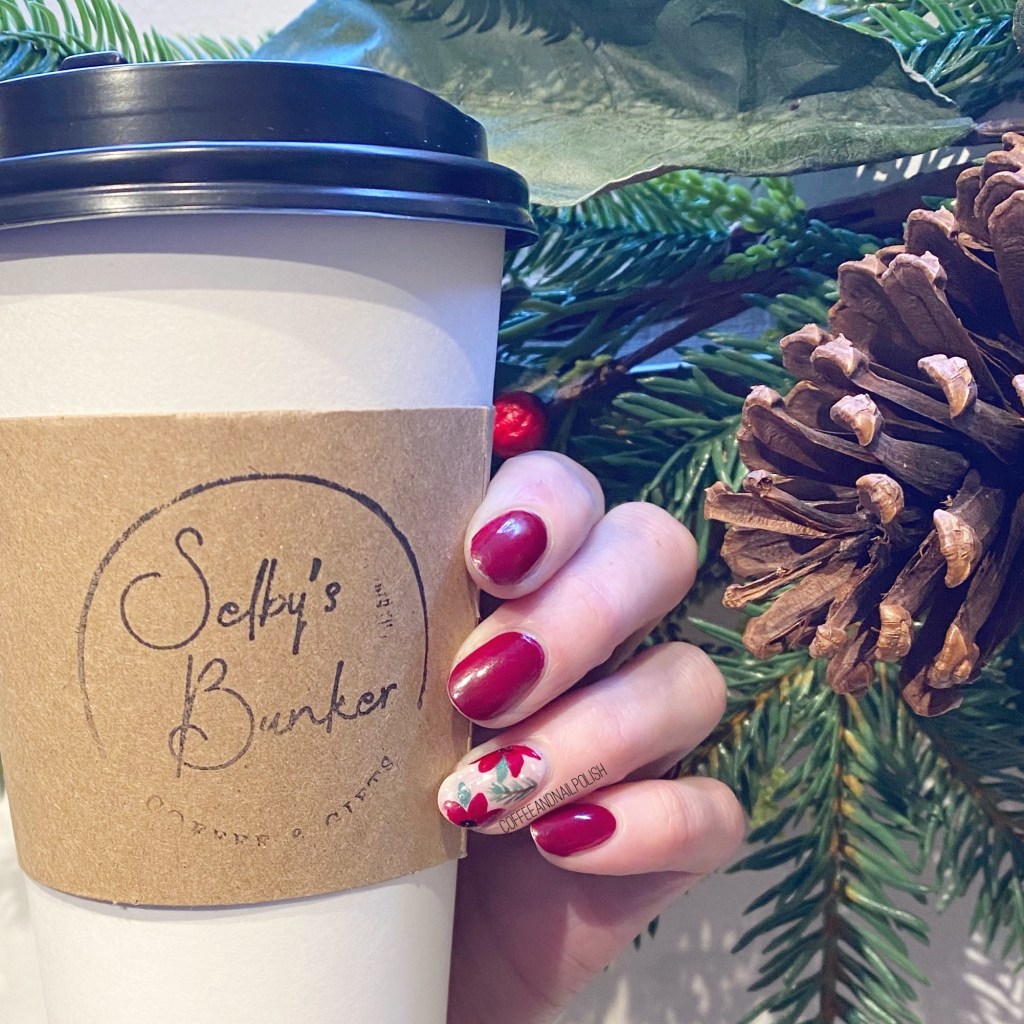 The close up is my favourite (minus the blue hair dye peeking by my cuticle… ugh) I feel like these turned out so pretty, & they were surprisingly simple… after I finished my accent nails I kind of wished I had done a couple more fingers. But it is still a lovely accent nail look, & a lovely Christmas look!