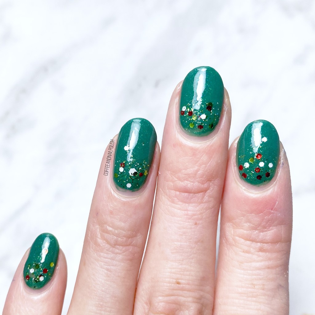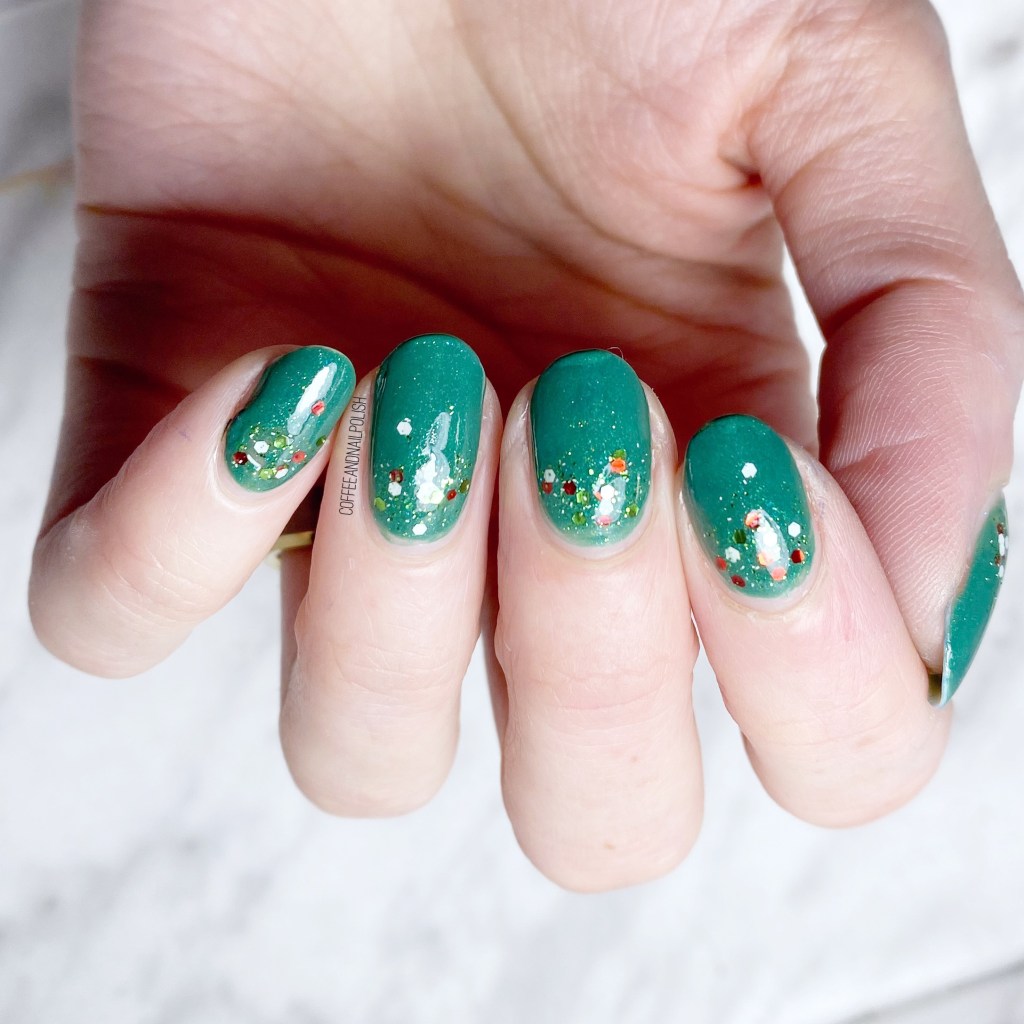 Hello Christmas sparkle! I was actually going to use my other Christmas-y glitter from Icing, Santa Baby, but unfortunately it’s on the goopier side, so I decided to go with my other very Christmas-y glitter for this look. I’ve mentioned before how I love the speed & ease of a glitter gradient, plus the versatility, so I don’t think I’ll ever get tired of them.