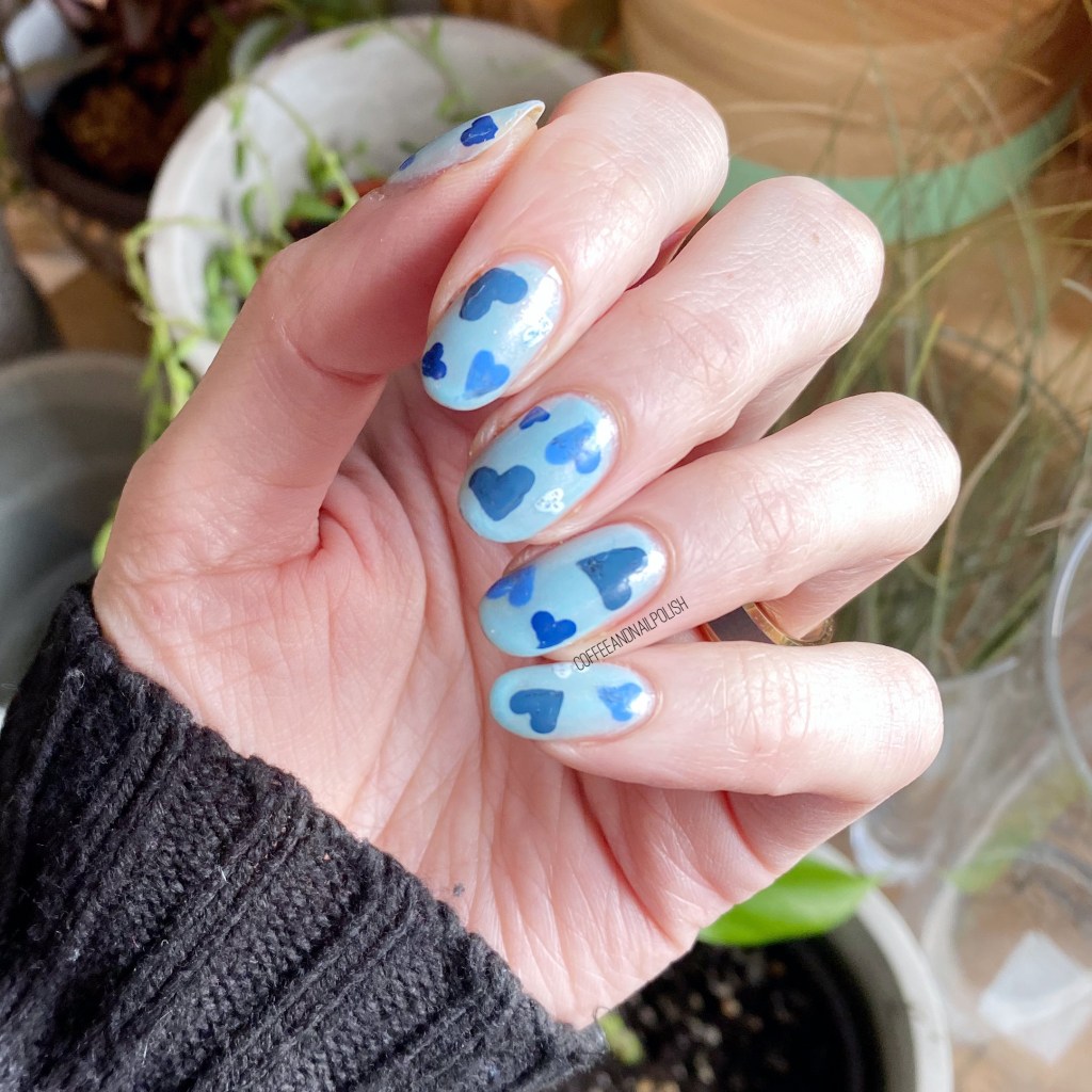 How pretty did these turn out? I love the blues all together, & it’s a fun alternative to your usual pink on pink Valentine’s Day designs. Also I’m pretty proud of how my hearts turned out.
