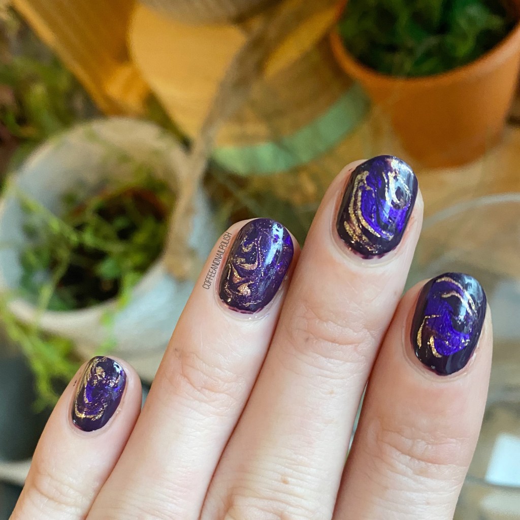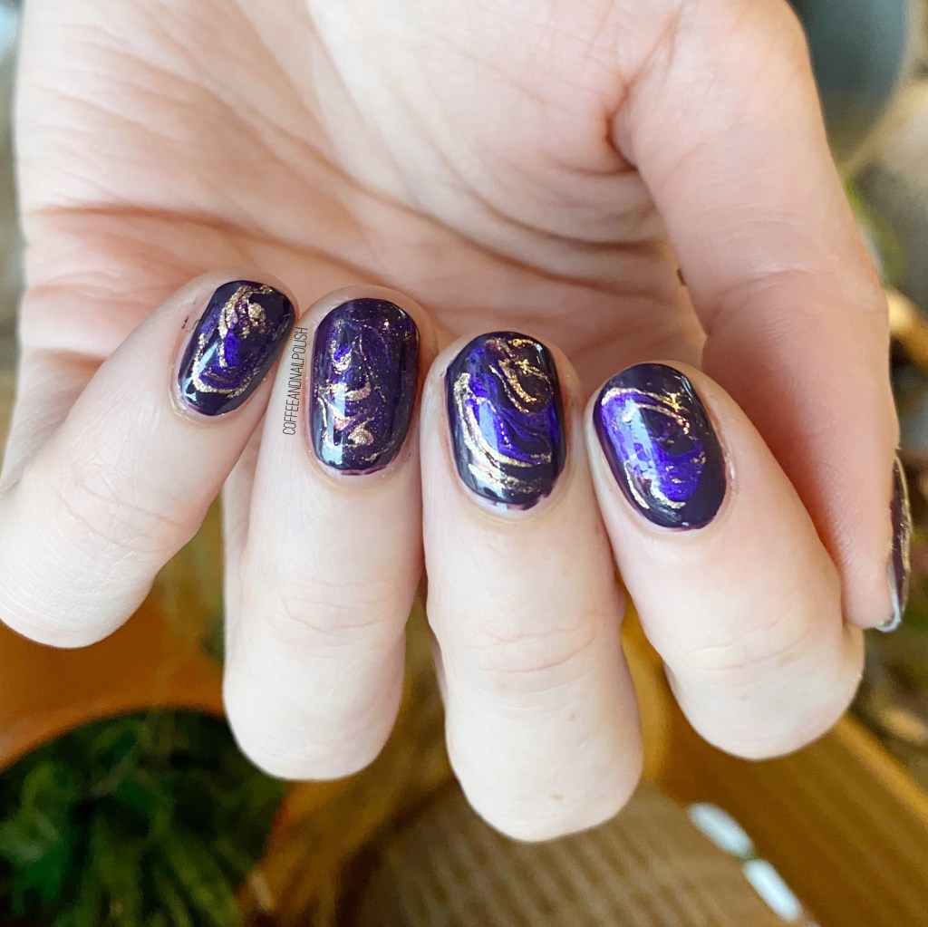 It’s been a while since I attempted a drag marble, & my ring finger is a little rough thanks to bumping it before it had a change to dry enough. But I think all 9 other nails turned out really gorgeous. The trick I’ve learned to drag marble is less movements turn out better than a ton. You really want to keep them down to a minimum, otherwise you end up getting a swampy look.