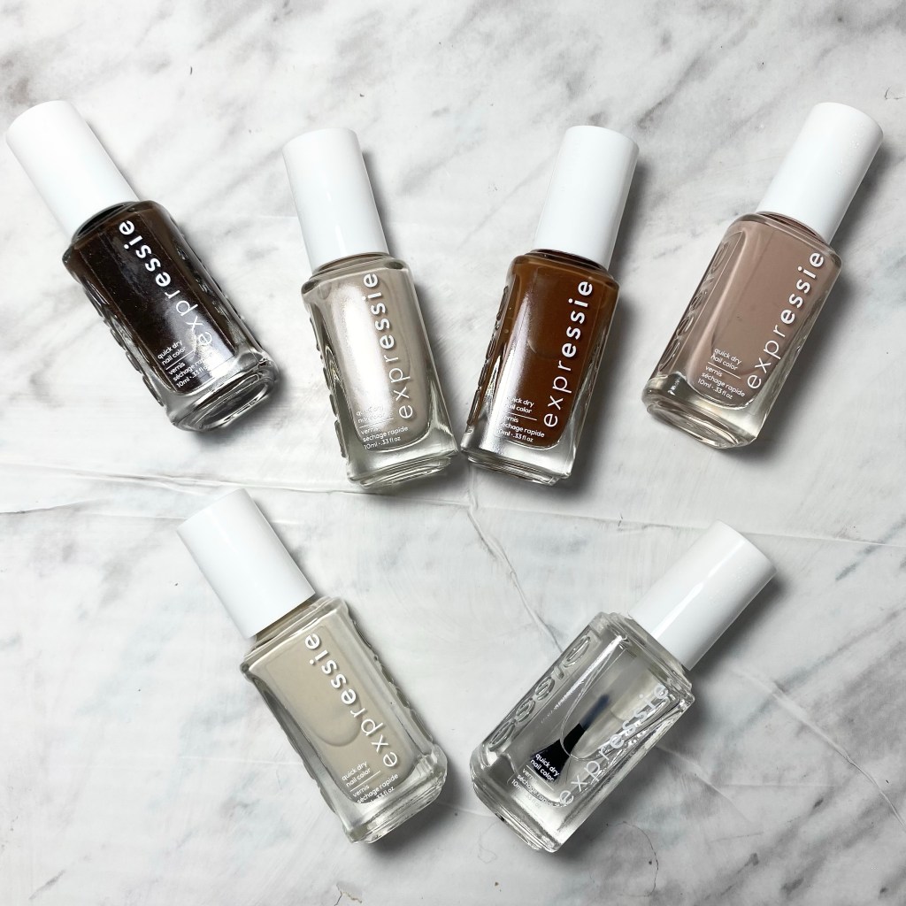 The two gave teamed up with Essie for a beautiful collection of Expressie shades — Take the Espresso, Cold Brew Crew, Buns Up, Millennium Momentum, Daily Grind, & Always Transparent. This was my first experience with the Expressie line, which is an 8-free, vegan formula, formulated without any nasty ingredients that can sometimes be found in nail polishes.
