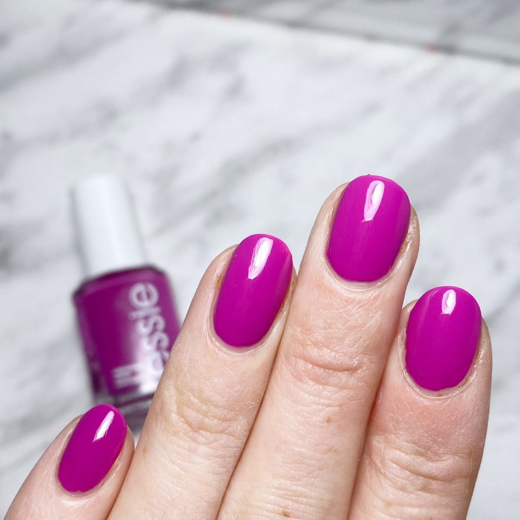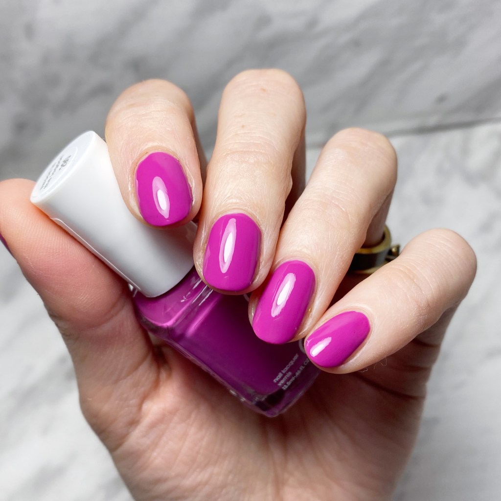 Oh my gosh, I’m obsessed with this colour. The formula on this shade is really easy to apply, & smooth. I needed two coats for full coverage, but I always feel most comfortable applying 2 coats anyways. I love the vibrant fuchsia shade. It’s a perfect pop of colour for summer, even if this shade was originally released as a Spring shade.