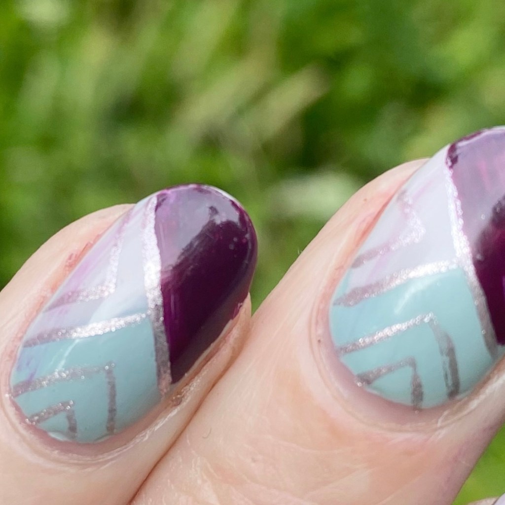 Okay, so I’m obsessed. Originally this look started off as just a Autumn themed colour block, but I felt like something was missing — which happens a lot. I added an outline of the rose gold (Petal to the Metal) & then decided to get risky & add a few chevrons over the mint. It looked so good, I did the same thing on the block of grey, & tada! Freehand nail art perfection!