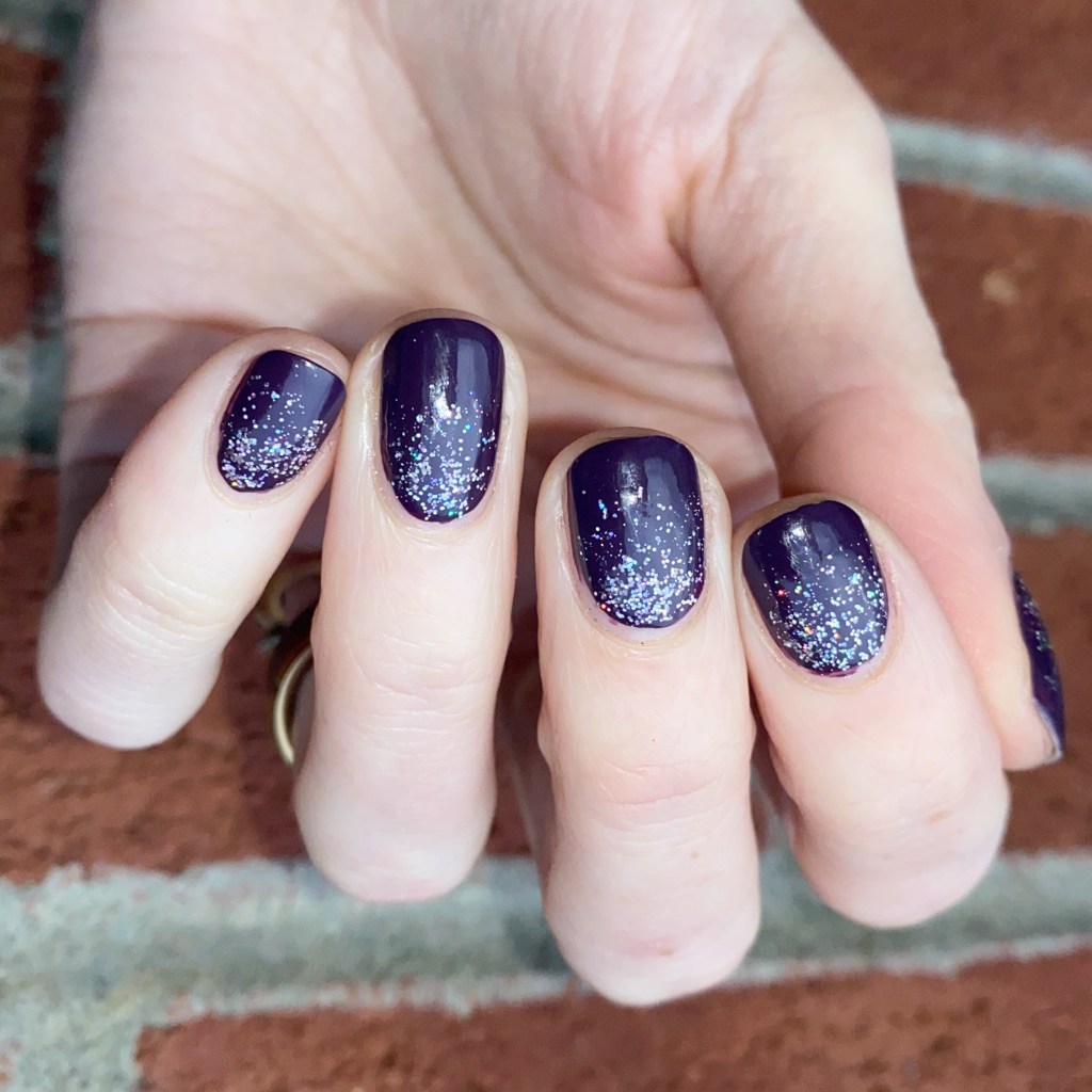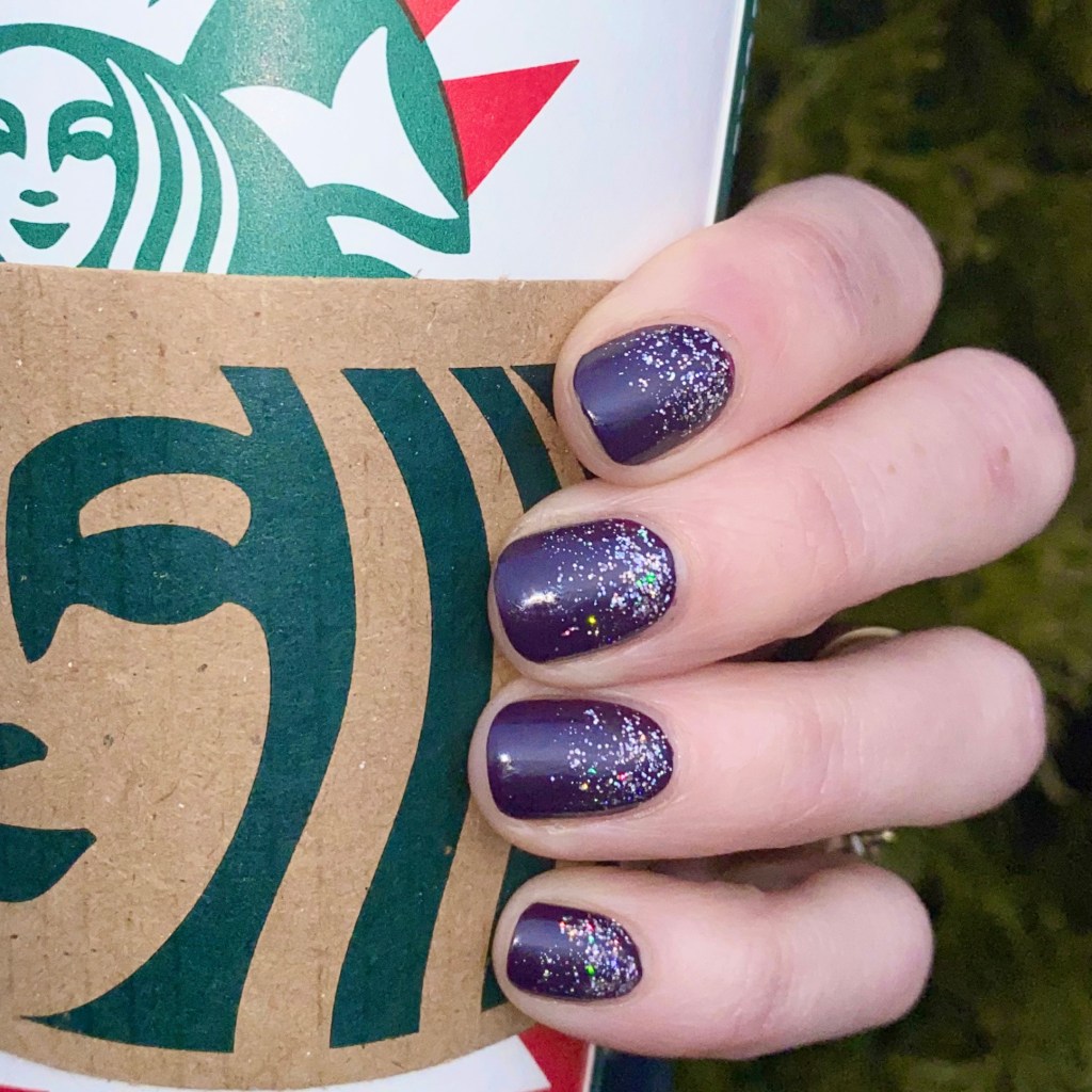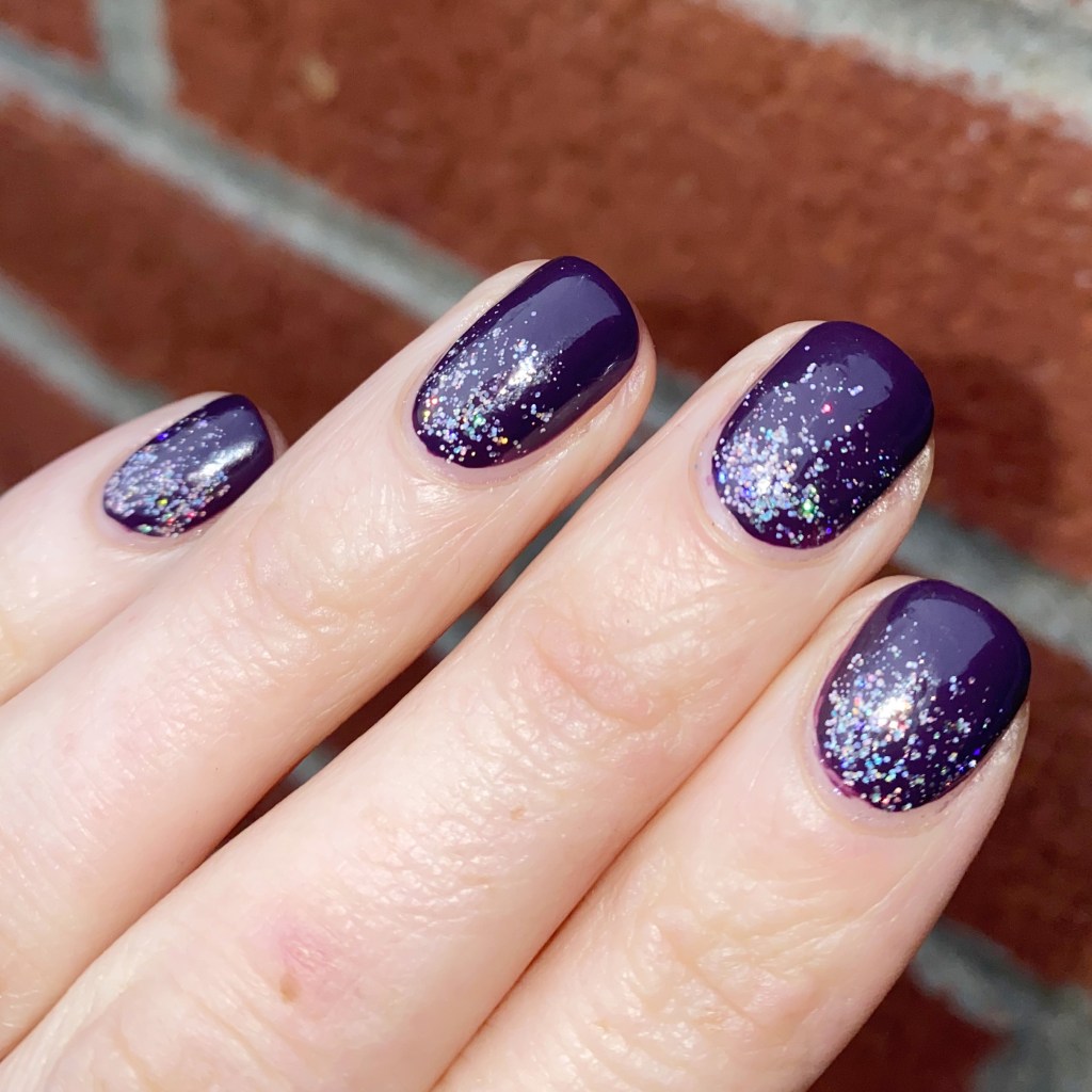 I ended up doing a burple holo with a Morgan Taylor glitterbomb (“Coming Up Crystal”) for my ring fingers- it was 8 at night and bed was calling soon, so I didn’t get too fancy this year.