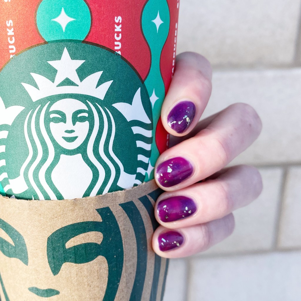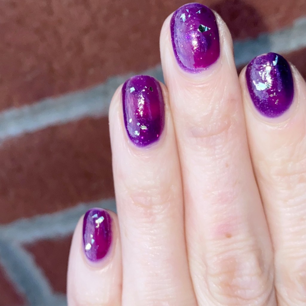 We all know that I’ve been having a purple moment lately, & I thought I would keep it going with the purple-y design I wore this past weekend. Originally, this was supposed be a drag marble, & that was the technique I used to create the blending between shades. & then obviously I added some gold glitter shards, for an extra little bit of sparkle.