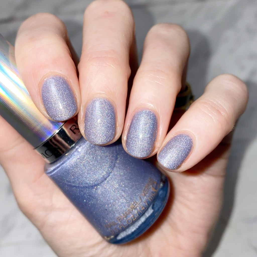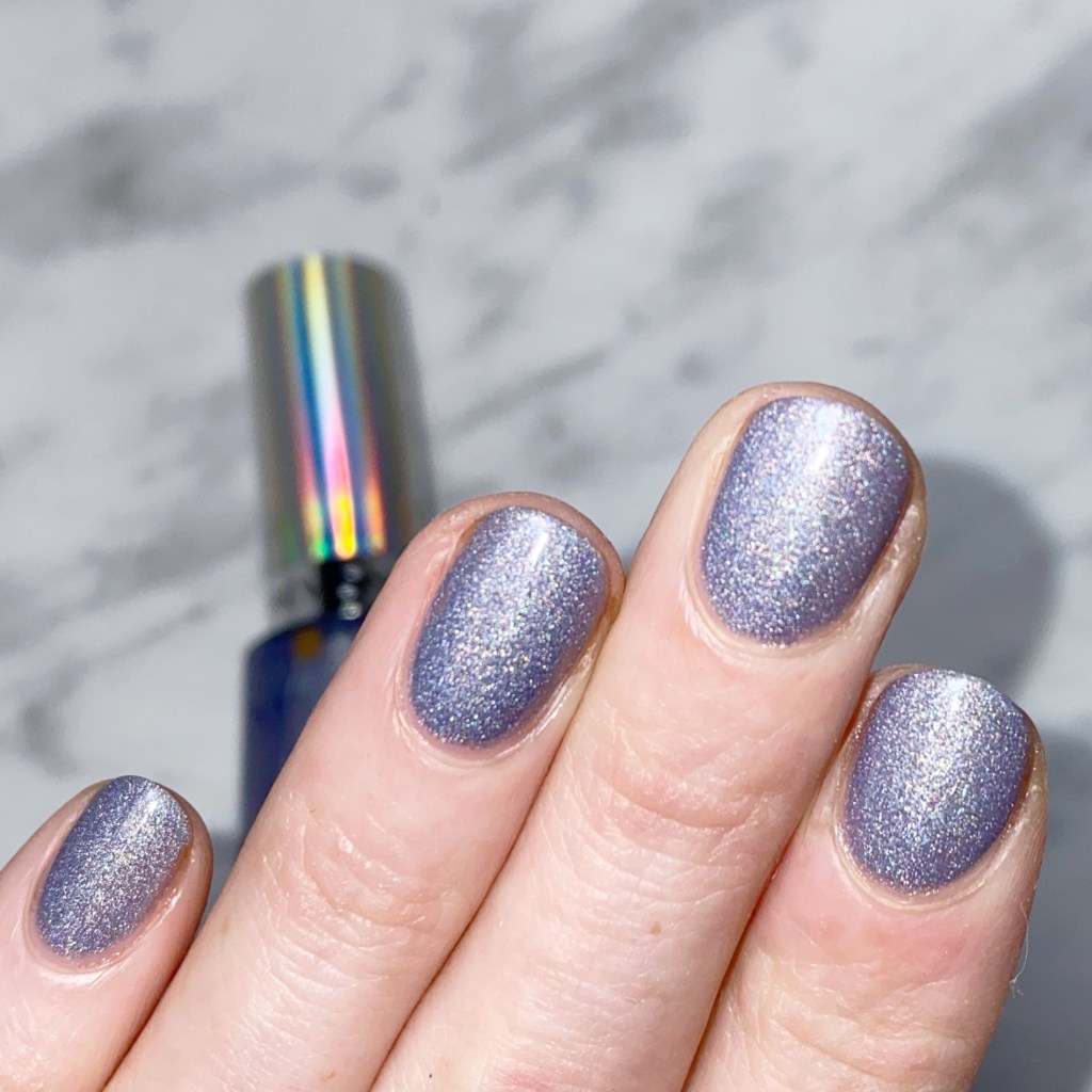 Revlon Unicornicopia is a beautiful liner holographic lavender that was originally released in 2017. The formula is a bit thin — I needed 3 coats for full coverage — but I found it dries quickly. I had no issues with the coats pulling when you apply another, something which I’ve found with other holographic shades.