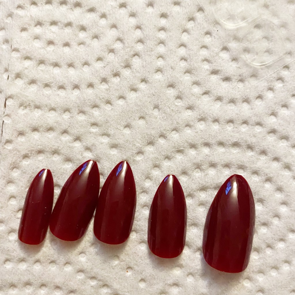 STEP ONE: pick out your sizes to fit your nails. I always line mine up so it’s easy to apply.