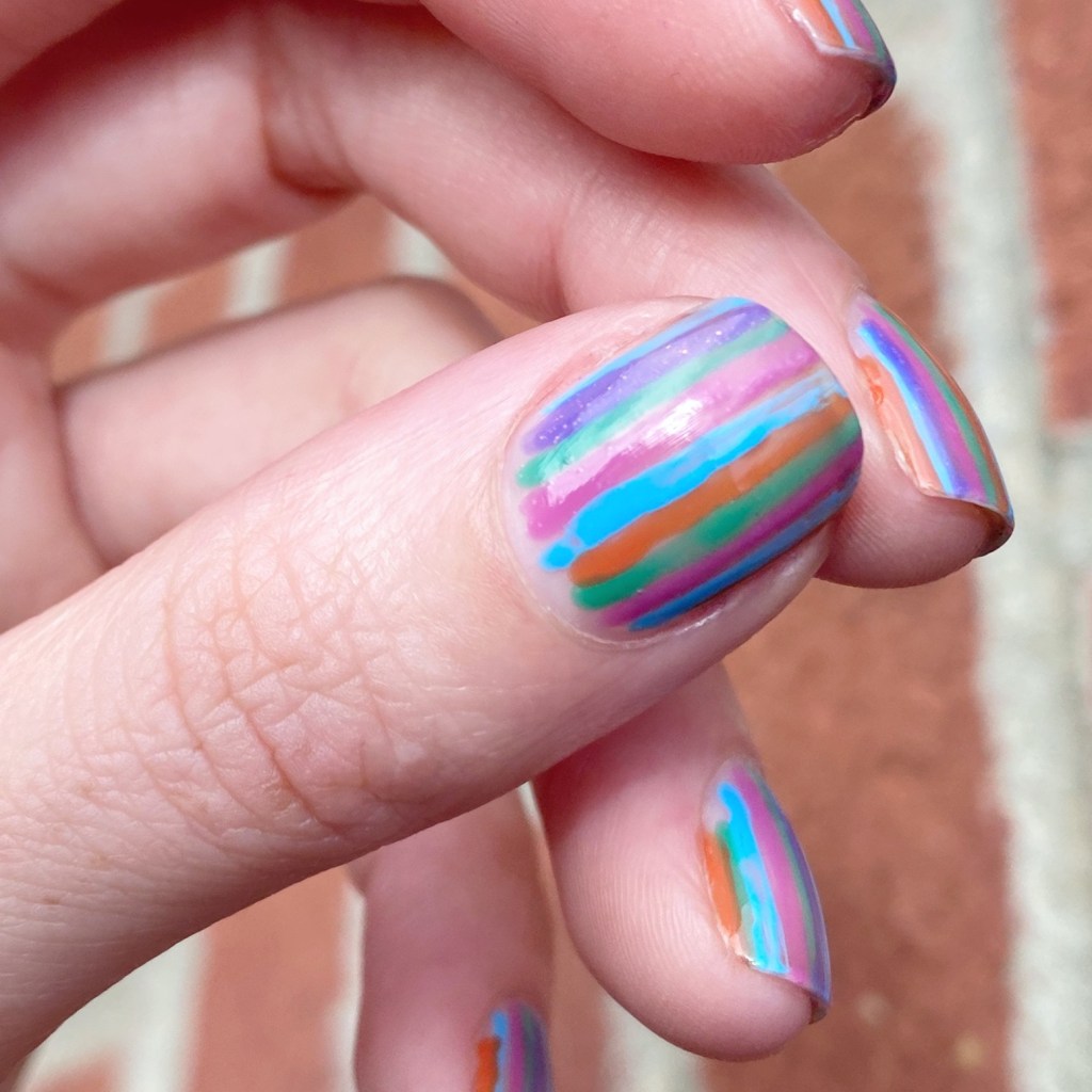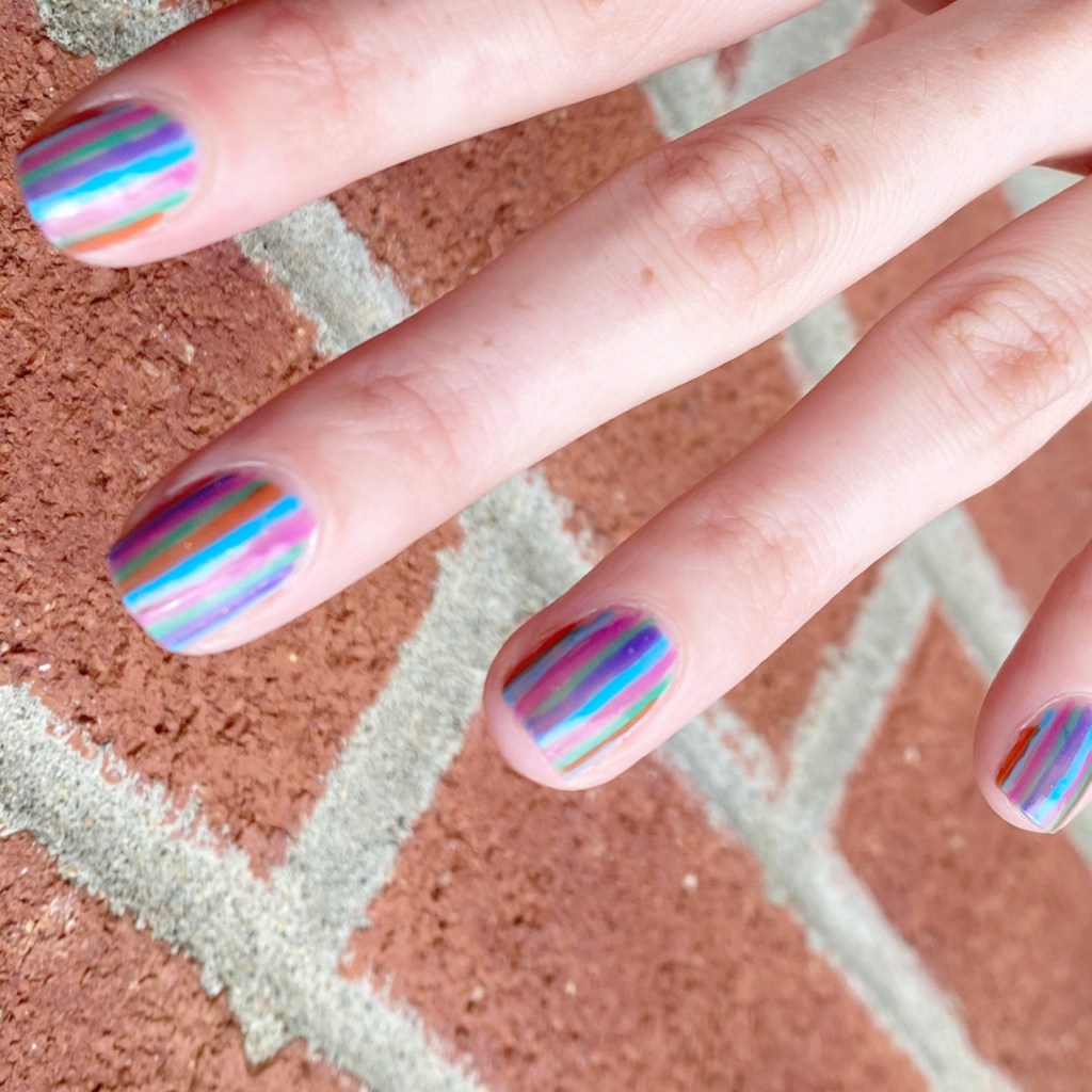 I was feeling a stripe-y beach towel inspired look, & I thought the Summer collection from Olive & June would be perfect for that! For this look, I started my stripes over my bare nails & drew on the stripes for each colour individually. It was definitely time consuming, but I think the end result turned out perfect!