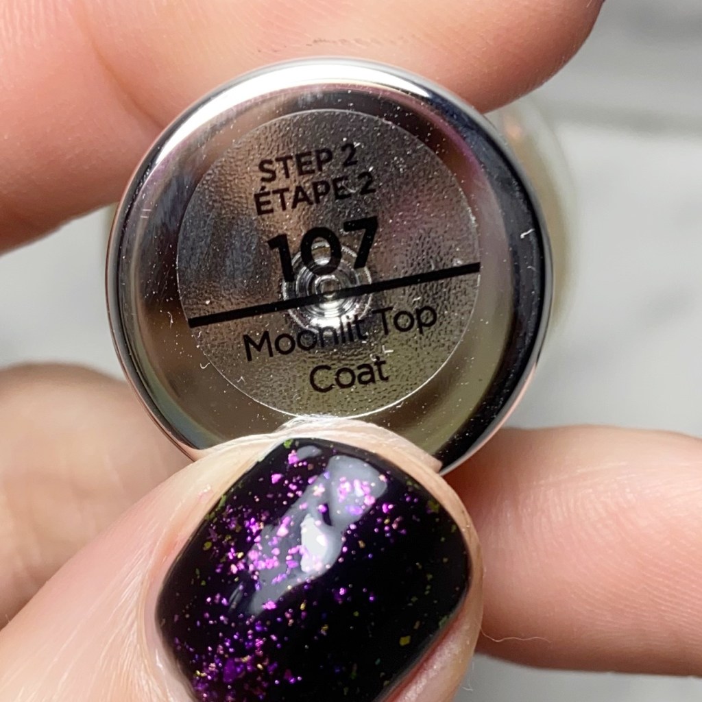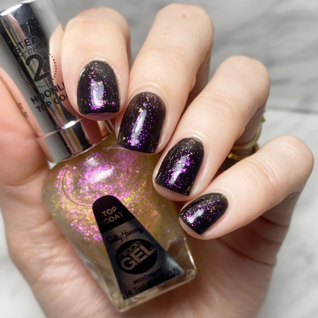 The second top coat I received was Sally Hansen Miracle Gel Moonlit Top Coat. I originally applied this shade over Beet Me At The Mall but for full appreciation I knew it didn’t to be applied over black.