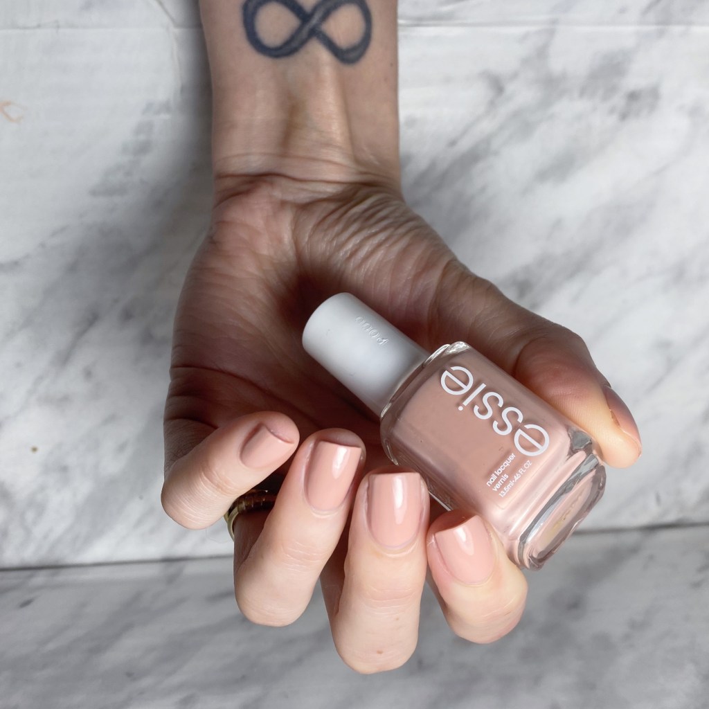 According to my internet research, Essie Bare With Me was released in 2017 as part of the Wild Nudes collection — & is now, sadly, discontinued. Online, it’s described as an apricot, but I feel it’s more pinky/blushy myself.