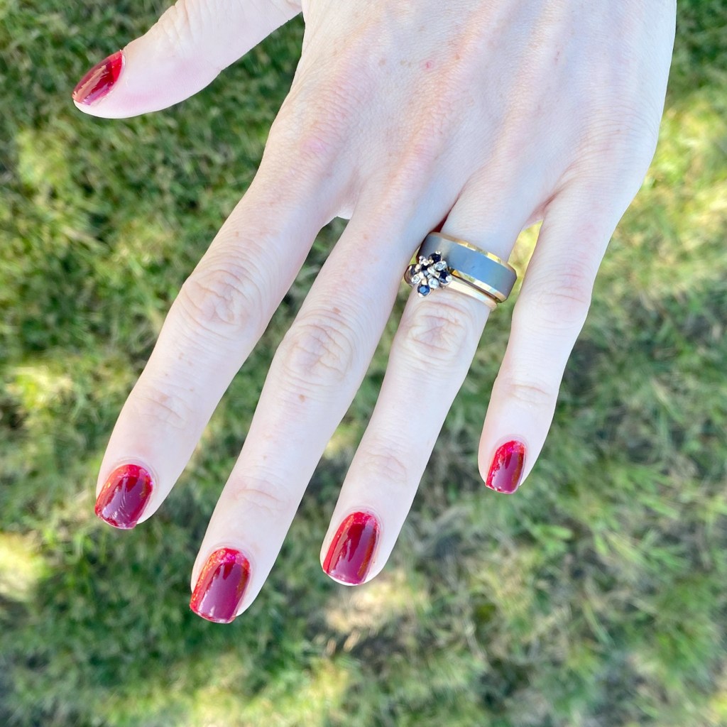I wasn’t sure exactly what to call these nails. I know people used to refer to these as sideway French nails, but I feel like sideways swoop nails feels like a better descriptor. Either way, I really like how these turned out — & I got a few compliments at work too!