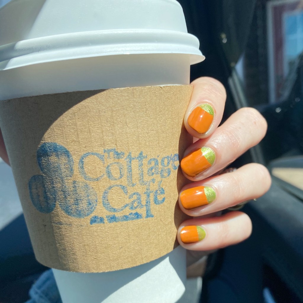 I do love both these colours separately, so I figured they would pair well together. &, they do, but didn’t quite hit the Fall vibes I was going for. But, Mikey is my favourite Ninja Turtle so I can’t be too upset about this accidental Ninja Turtle look. & a half moon design is always a good (& easy!) look to wear.